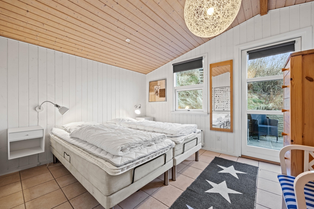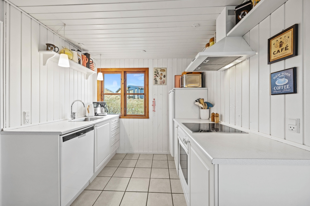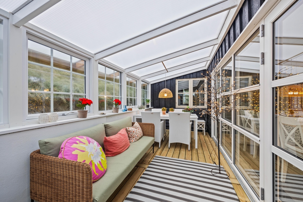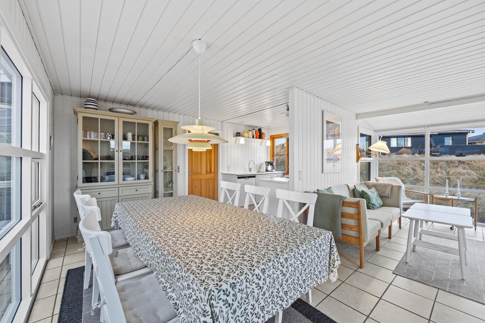 Dieses urgemütliche Ferienhaus ist hell und freundlich eingerichtet. Es verfügt über sämtliche Annehmlichkeiten wie Spülmaschine, Trockner und Waschmaschine. Es bietet Platz für bis zu 4 Personen, die sich auf 2 Schlafzimmer verteilen können. Vom Badezimmer aus habt Ihr Zugang zur Sauna, in der Ihr Euch nach einem langen Strandtag entspannen könnt. Der schöne helle Wintergarten lädt zu vielen gemütlichen Stunden ein und bietet eine herrliche Aussicht über die umliegende Dünenlandschaft. An kühleren Tagen könnt Ihr die wohlige Wärme des knisternden Kaminofens geniessen.