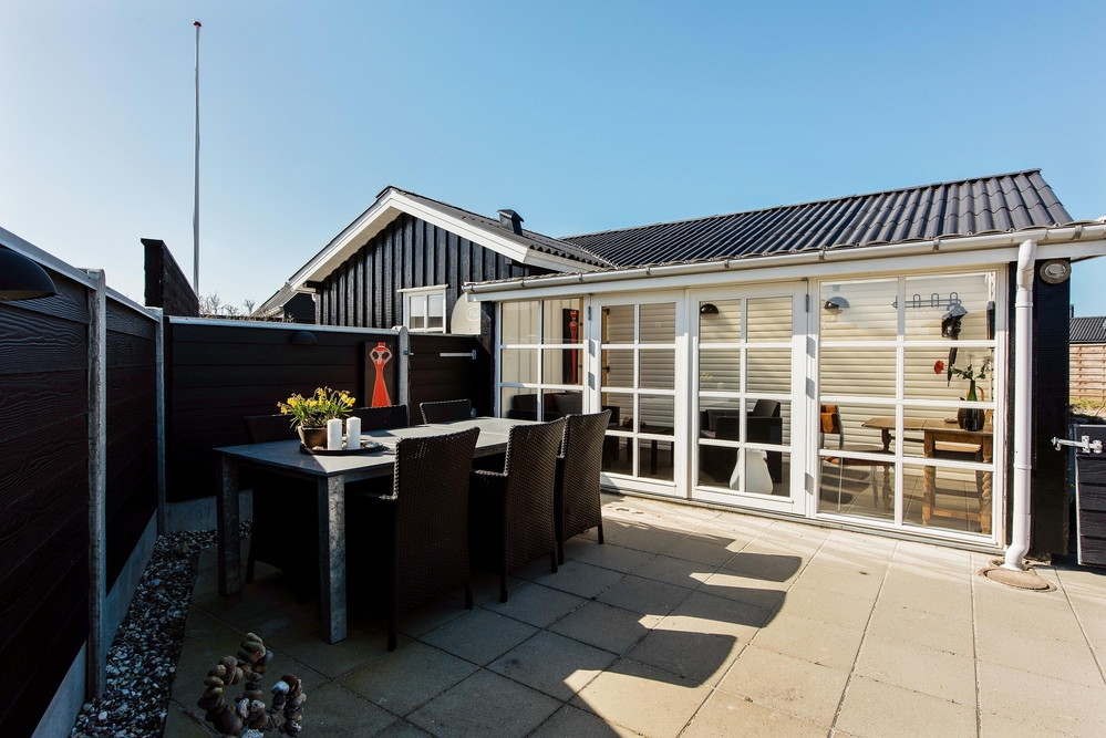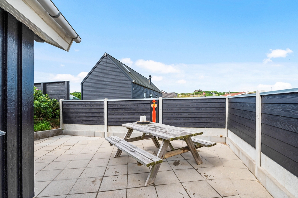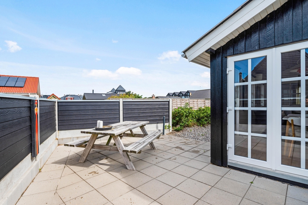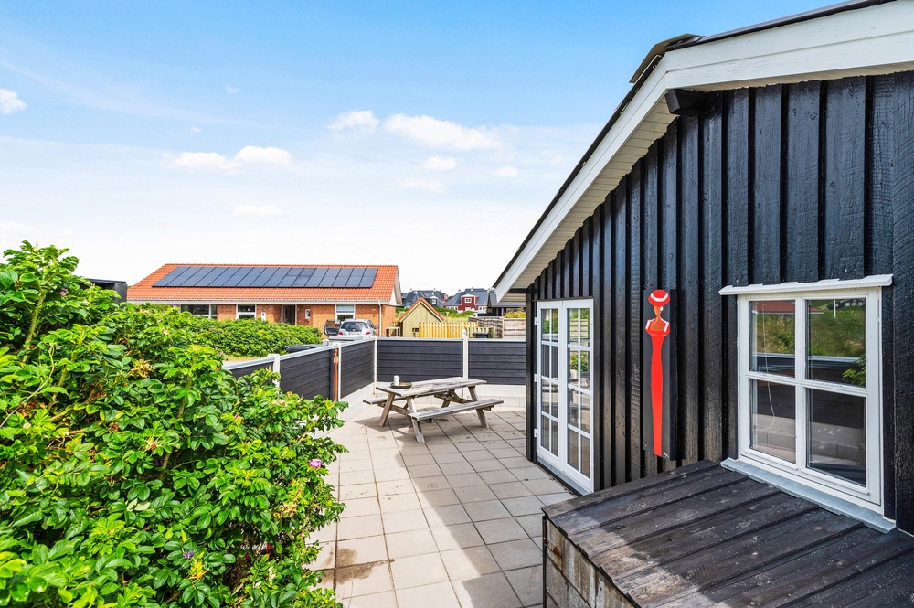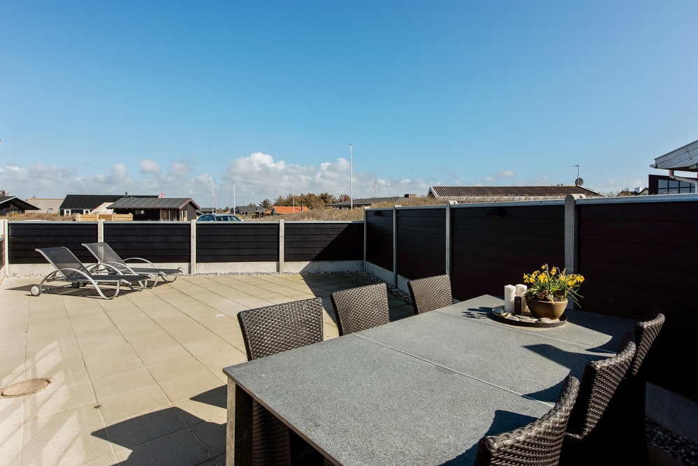 Vom Wohnraum aus habt Ihr Zugang zur abgeschirmten Terrasse, die mit bequemen Gartenmöbeln ausgestattet ist. Beim Sonnenbaden dringt das Rauschen des nahegelegenen Meeres an Eure Ohren und der Duft der Strandrosen in Eure Nasen. Wenn Ihr dann noch die schneeweissen Möwen am tiefblauen Himmel anschaut wisst Ihr, Ihr habt alles richtig gemacht.