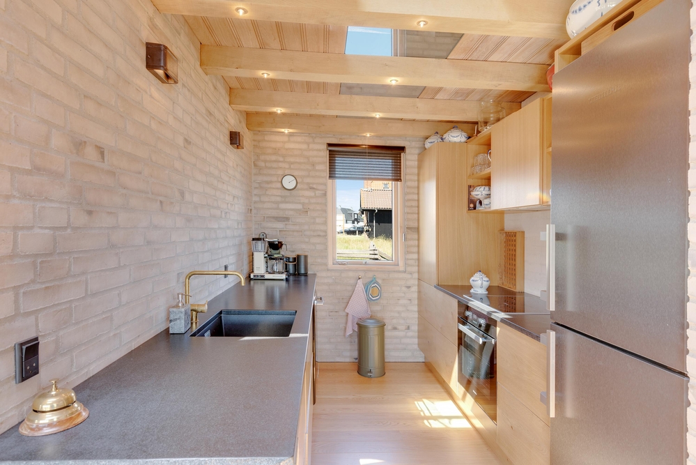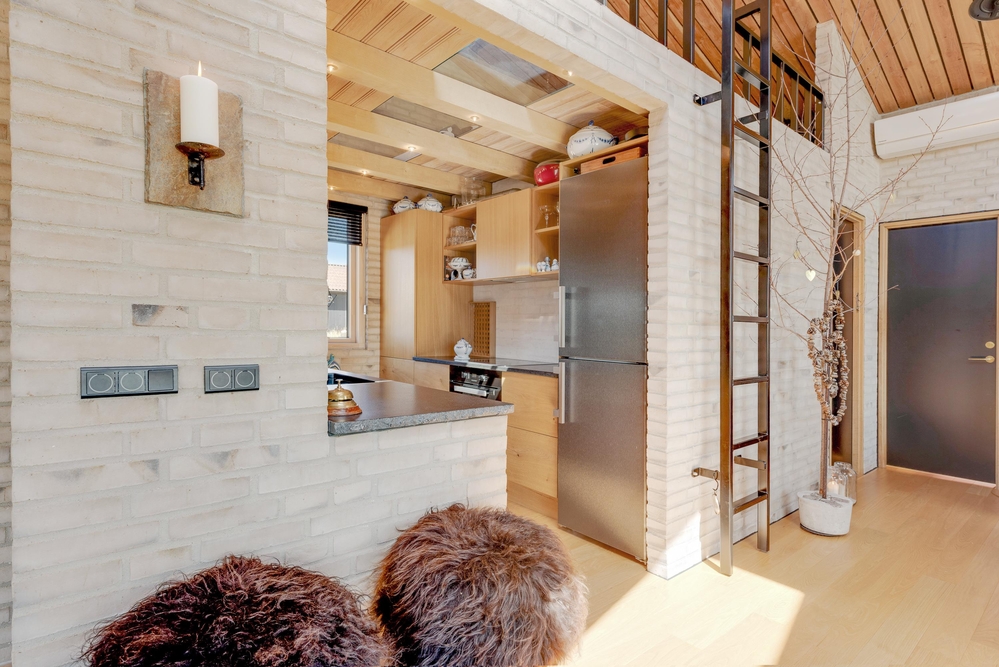 Dieses charmante Ferienhaus besticht durch seine helle Atmosphäre. Mit 64m2 Wohnfläche bietet es ausreichend Platz für bis zu vier Personen. Genießt das Beisammensein im Wohnzimmer vor dem Holzofen, der in kühleren Abendstunden wohlige Wärme spendet. Der offene Wohnbereich lädt zu geselligen Abenden ein, während die gut ausgestattete Küche mit Spülmaschine es euch ermöglicht, eure Lieblingsgerichte mit Leichtigkeit zuzubereiten.