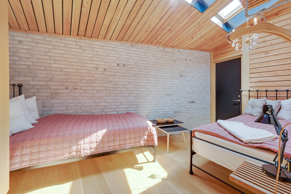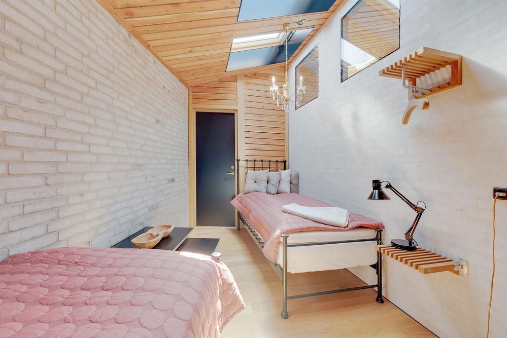 Zwei gemütliche Schlafzimmer, eines mit einem Doppelbett und eines mit zwei Einzelbetten ausgestattet, sorgen für erholsame Nächte. Ein Badezimmer mit Fußbodenheizung sorgt für einen angenehmen Start in den Tag.