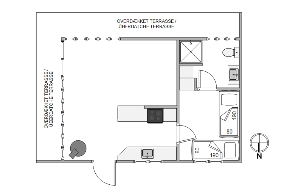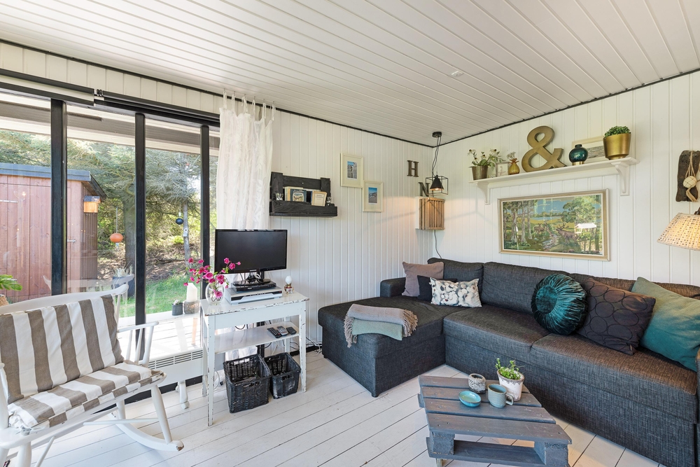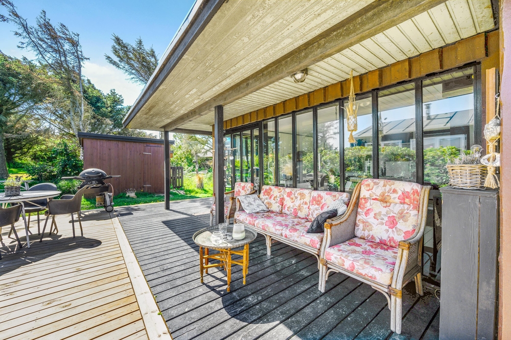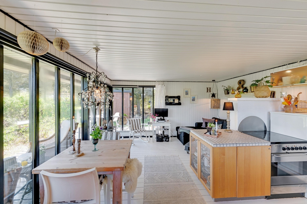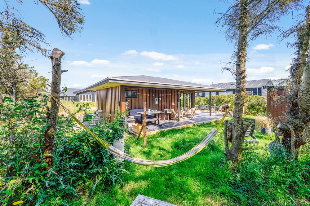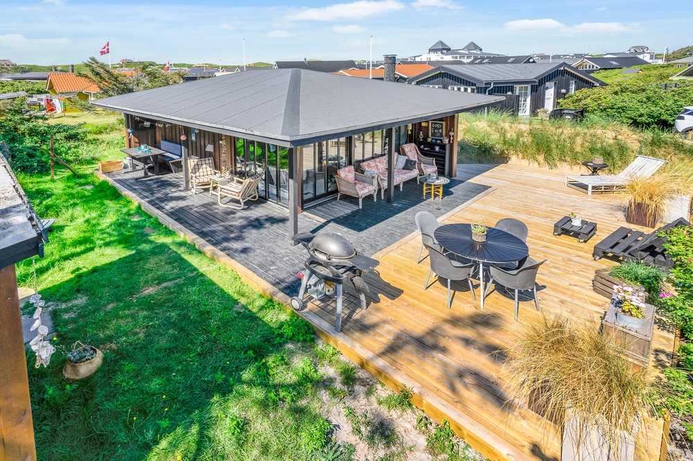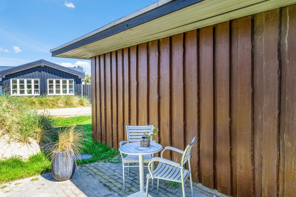 Das Haus besitzt natürlich auch eine schöne Terrasse, auf der ihr insbesondere an sonnigen Tagen viel Zeit verbringen könnt. Rund um das Ferienhaus findet ihr zahlreiche Sitzmöglichkeiten, sonnige und auch schattige sowie windgeschützt Plätze ? ganz nach Belieben. Die große Fensterfront lässt sich öffnen, sodass ihr gerade an sommerlichen Tagen einfach den Wohnbereich zur Terrasse hin öffnet.