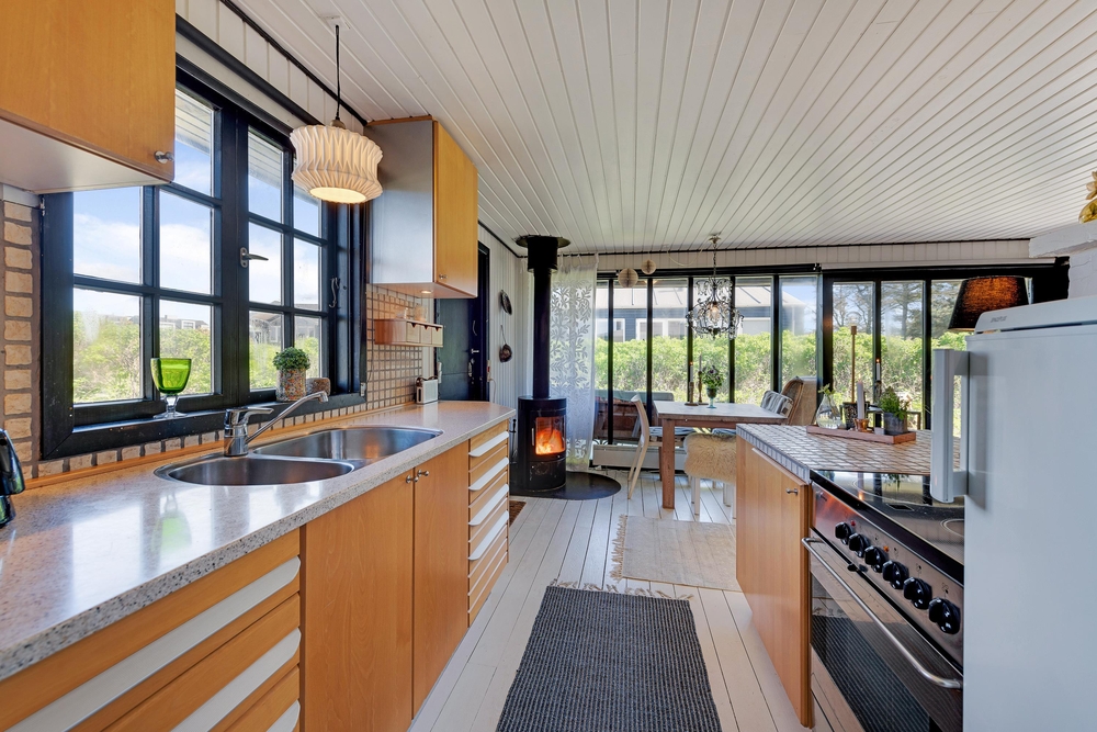 Mitten in Søndervig im Sletten 7 erwartet euch dieses kleine und feine Ferienhaus für bis zu 2 Personen und 1 Hund. Das gemütlich gestaltete Ferienhaus im Vintage-Style liegt auf einem kleinen Grundstück, welches von Büschen und Bäumen abgeschirmt ist. Nur ca. 250 Meter sind es sowohl bis zum Strand oder dem Zentrum von Søndervig. In kurzer Zeit sorgt der Holzofen für angenehme Temperaturen und die um das Haus angelegte Terrasse lädt zum Entspannen und Sonnenbaden ein.