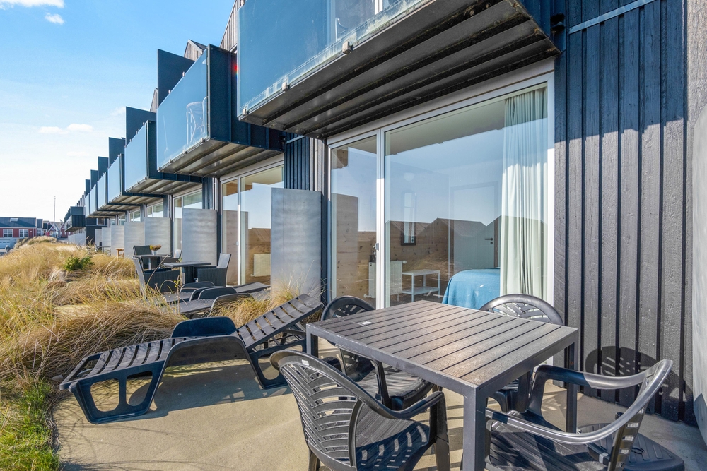 Direkt vom Wohnraum betretet ihr den Außenbereich eures Domizils. Es stehen euch sowohl eine Terrasse sowie auch ein kleiner Balkon mit wunderbarer Aussicht zur Verfügung. Hier erwarten euch bequeme Gartenmöbel und Sonnenliegen zum Entspannen an der frischen Luft. Genießt dabei die tolle Aussicht über die Umgebung bei einer frischgebrühten Tasse Kaffee.