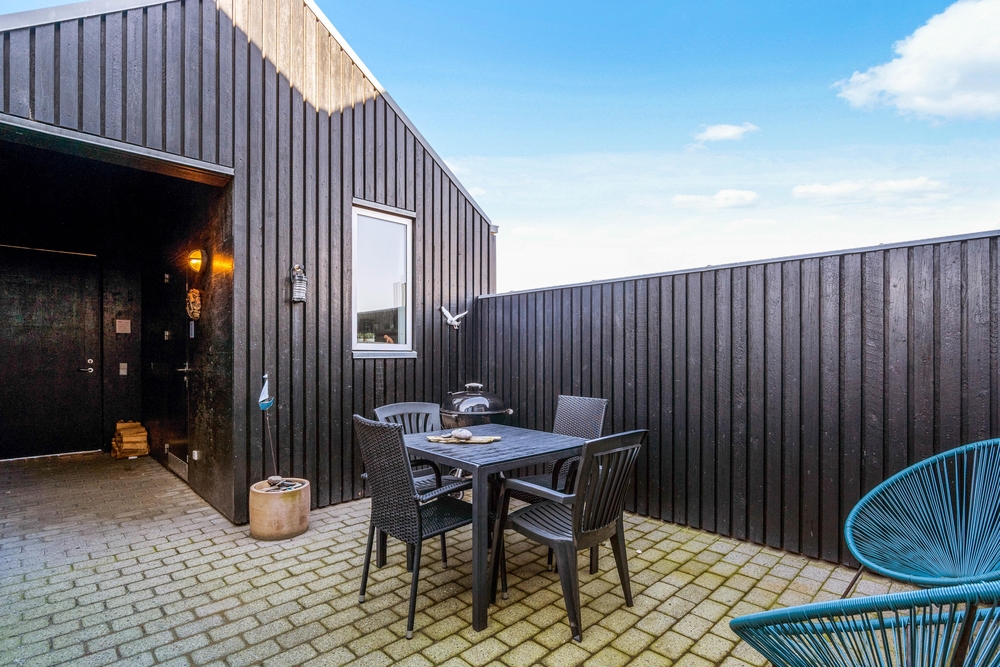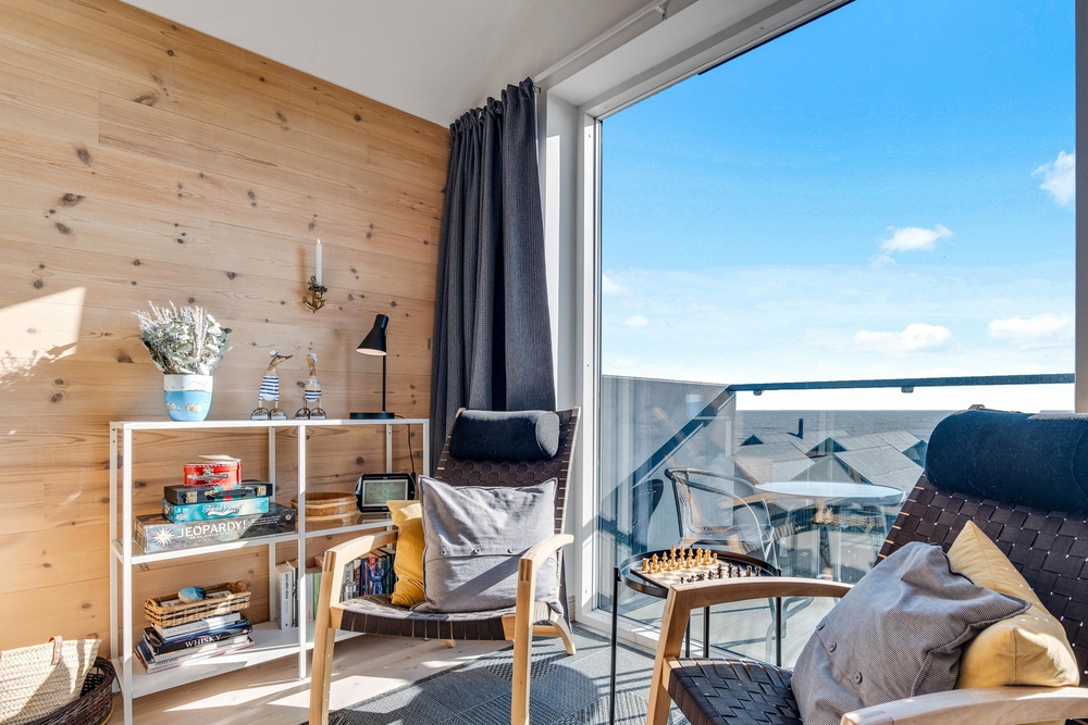 Eure Ferienwohnung in Hvide Sande ist ideal für einen entspannten Urlaub ausgestattet. Die Farbe ?blau? verläuft wie ein roter Faden durch die gesamte Wohnung. Es erwartet euch eine gemütliche Sofaecke mit Flachbildfernseher, wo ihr es euch am wärmenden, prasselnden Feuer des Kaminofens bequem machen könnt. Genießt dabei die Panoramaaussicht über die Umgebung.