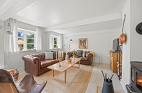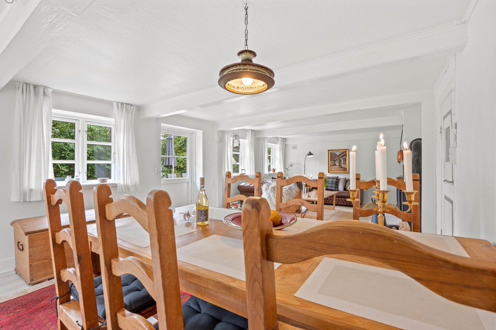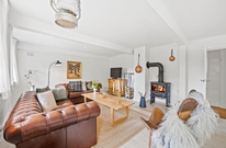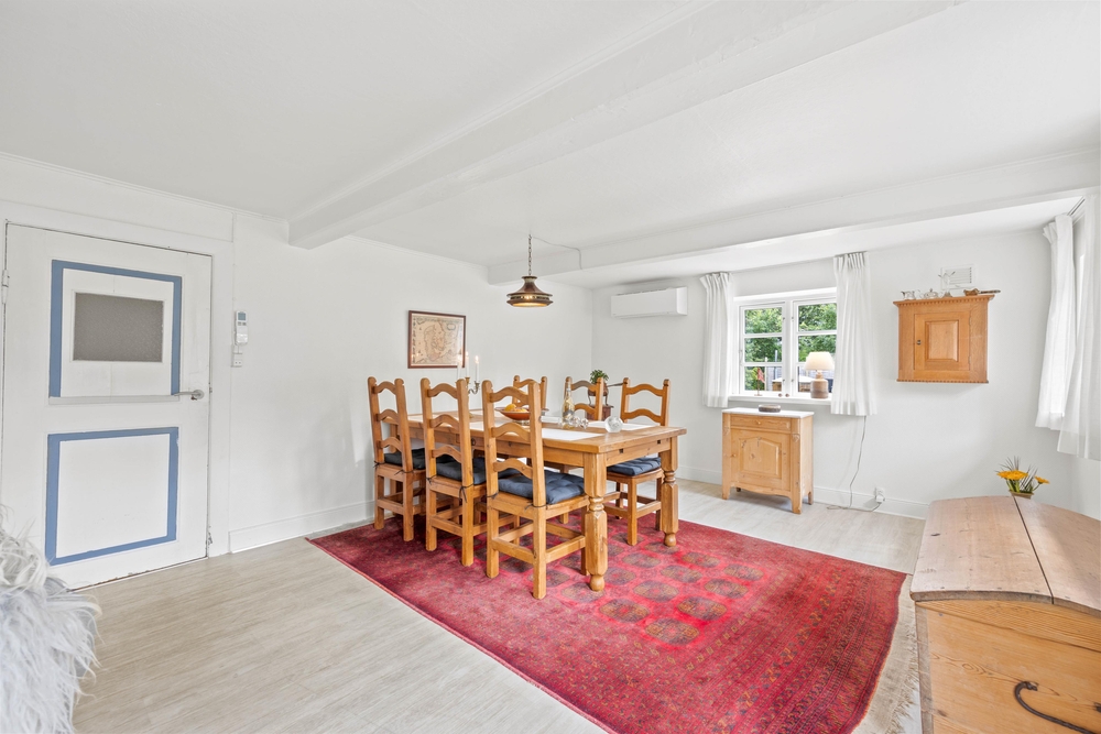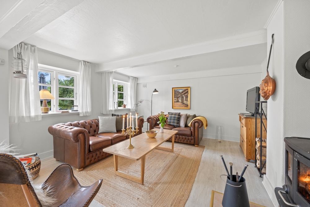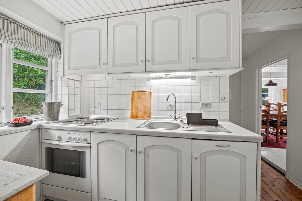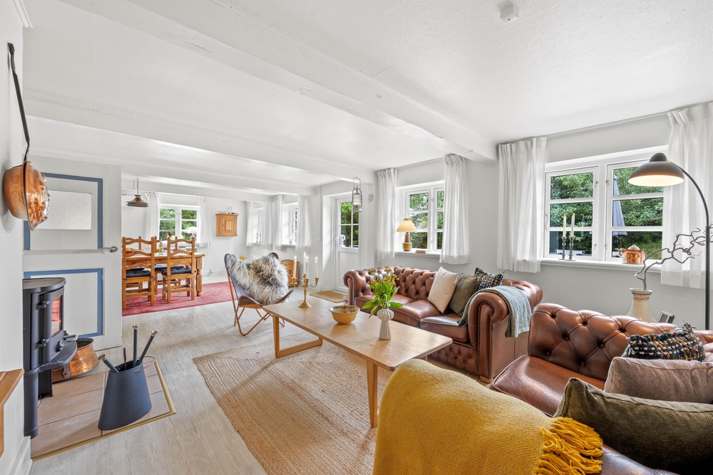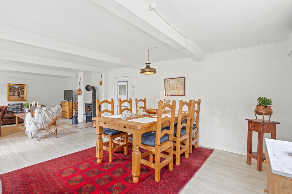 Die Wohnzimmerkulisse, geprägt von einem wärmenden Kaminofen, verspricht behagliche Abende, während die gut ausgestattete Küche im Landhausstil sowie mit Spülmaschine alle Voraussetzungen für kulinarische Genüsse bietet.