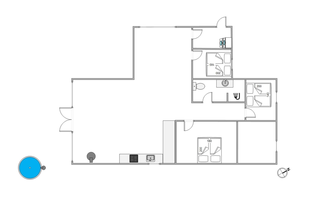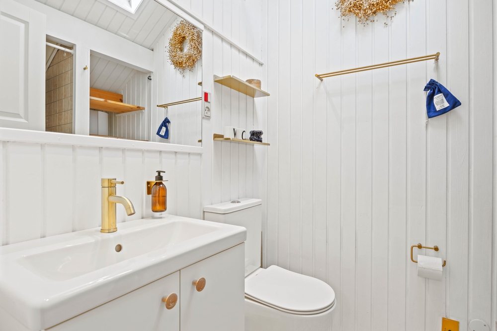 Des Weiteren findet ihr in diesem stilvollen Ferienhaus ein gepflegtes Duschbad, mit Waschmaschine und Trockner, vor. So könnt ihr stets für frische Handtücher sorgen. Für eine erholsame Nachtruhe stehen euch drei gemütliche Doppelbettschlafzimmer zur Verfügung.