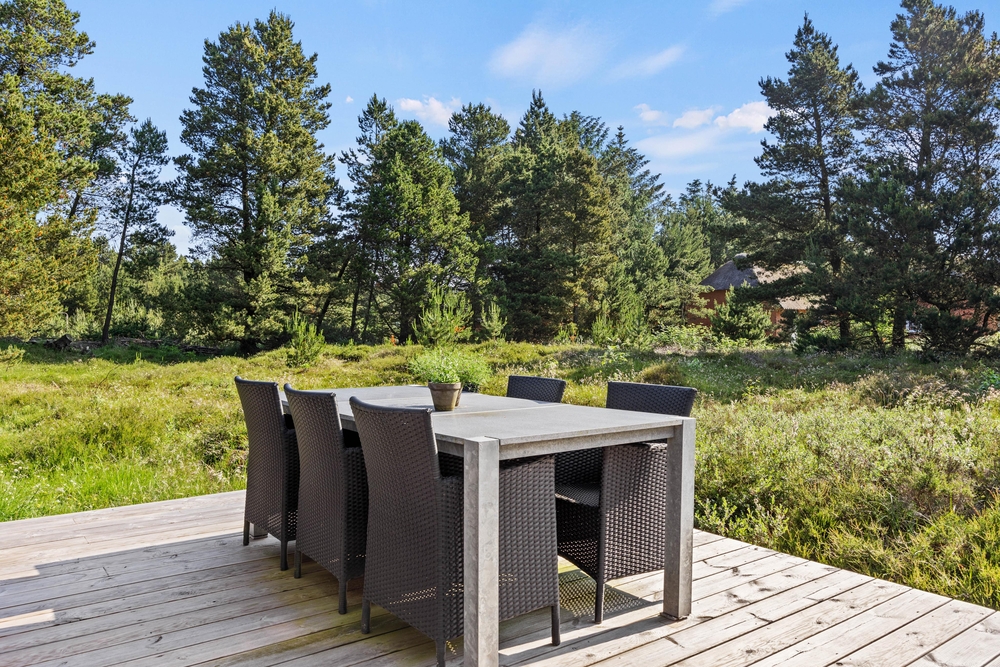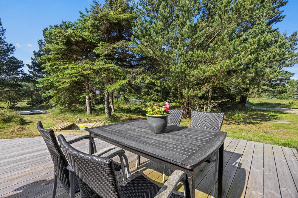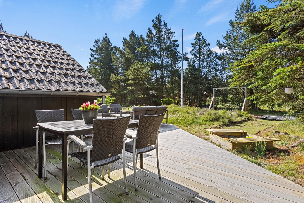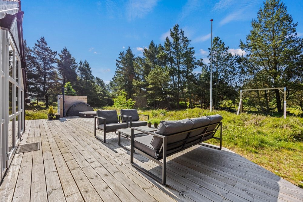 Auf einem 2500 qm großen Naturgrundstück, liegt euer Ferienhaus ganz idyllisch, umgeben von Büschen und Bäumen. Die sonnige Terrasse bietet euch bequeme Gartenmöbel, die zum Verweilen einladen. Auch für eure Kinder gibt es jede Menge zu entdecken. Sie können sich auf der Schaukel, im Sandkasten oder auf dem Trampolin austoben.