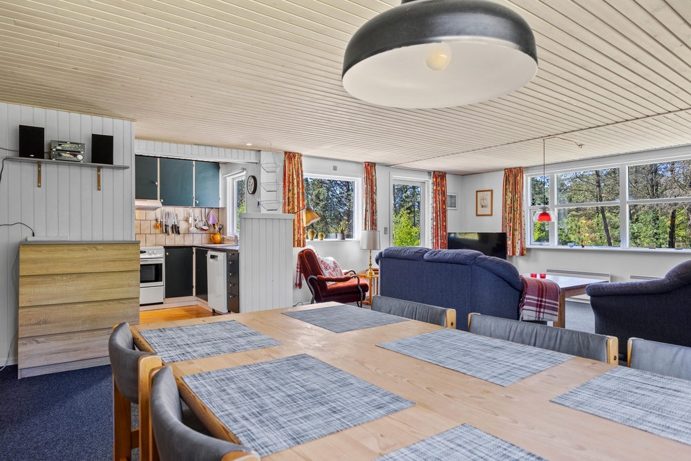 Dieses klassische Ferienhaus liegt am Ende einer Seitenstraße, auf einem 2500m² Naturgrundstück. Sowohl vom kombinierten Wohnraum als auch vom Wintergarten könnt ihr auf die große Holzterrasse gehen, wo ihr es euch in den Gartenmöbeln bequem machen könnt. Lauscht der Natur, lasst den Blick auf über das Grün der Natur schweifen, genießt einen frischen Kaffee und vertieft euch in den neuesten Roman. Hier könnt ihr die Seele baumeln lassen, einfach mal nichts machen und die freie Zeit mit der Familie verbringen.
