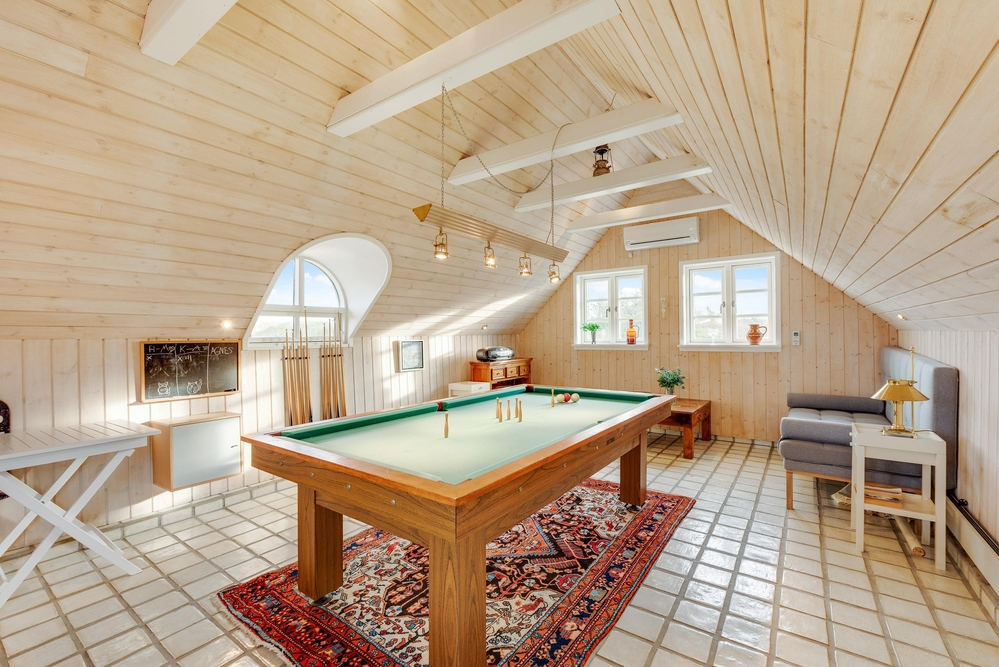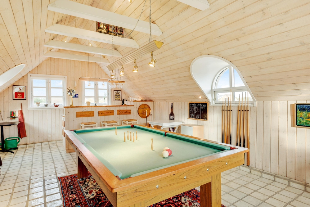 Die hellen Räume und ländliche Einrichtung dieses Ferienhauses haben einen speziellen Charme, welcher dazu beiträgt, dass ihr die Urlaubstage in vollen Zügen genießen könnt. Die Sauna und der Kamin spenden euch in den kalten Jahreszeiten wohlige Wärme. Und an den regnerischen Tagen könnt ihr euch die Zeit mit ein paar Runden Billard vertreiben oder ein spannendes Buch lesen.
