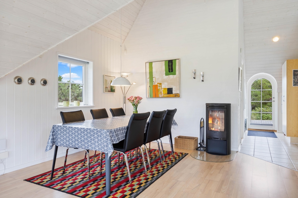 Macht euch abends oder an etwas kälteren Tagen den Holzofen an, der für eine noch gemütlichere Stimmung sorgt. Ob ihr zusammen am Esstisch sitzt und Pläne für die nächsten Tage macht, oder ein spannendes Kartenspiel spielt, hier ist genug Platz.Damit ihr ein angenehmes Raumklima und eine konstante Temperatur im Wohnbereich habt, wurde eine energiesparende Luft-zu-Luft Wärmepumpe installiert.