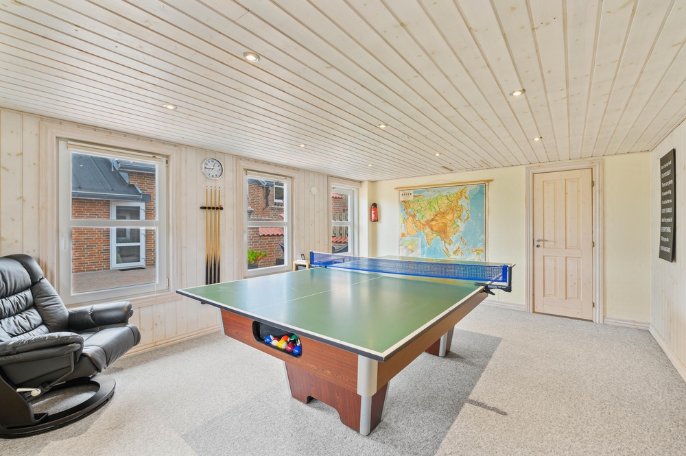 Das Ferienhaus auf Sneppedalen 55 in Houvig liegt nur 200 m entfernt vom Strand und hier ist für jeden etwas dabei, um einen schönen Urlaub zu verbringen. Hervorzuheben ist hier der Aktivitätsraum, wo ihr sowohl Tischtennis als auch Billard spielen könnt als auch der extra Bereich mit separatem Schlaf- und Badezimmer.