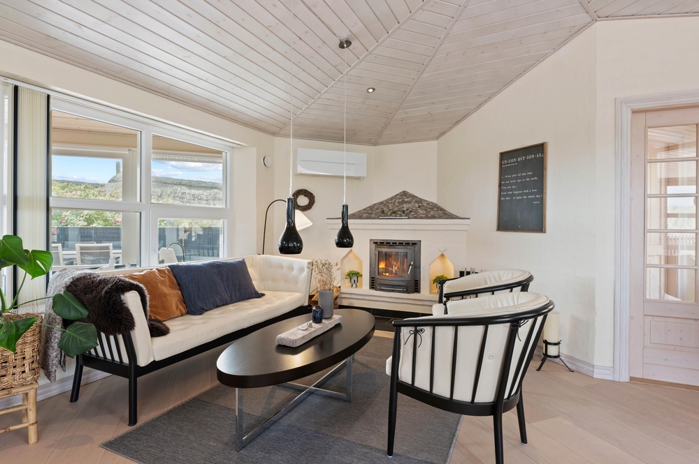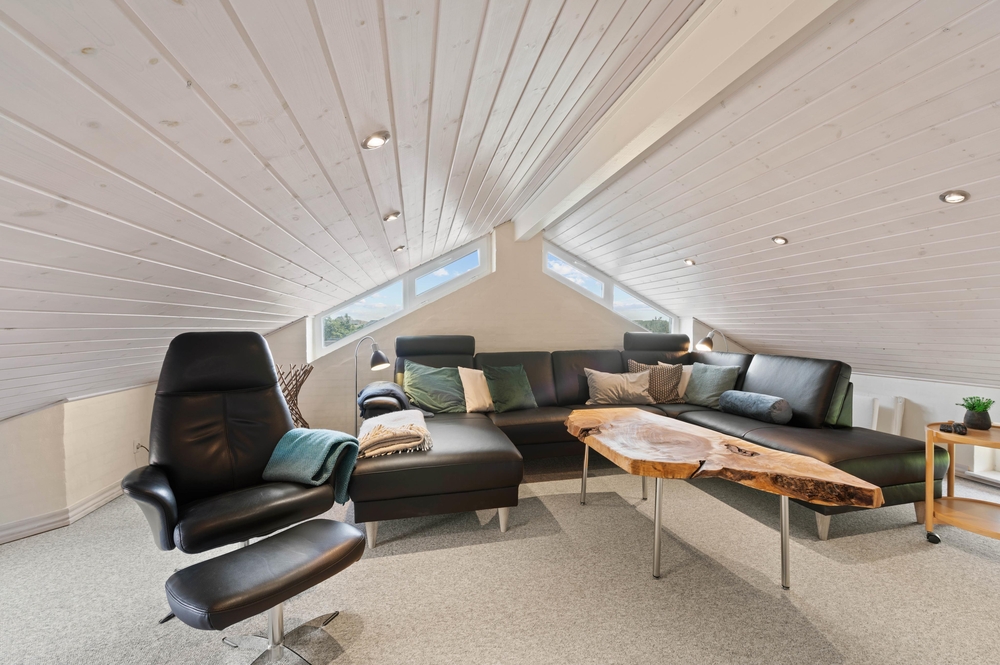 Für gemeinsame und gemütlichen Momente könnt ihr euch im Wohnbereich versammeln, wo ihr gemeinsam kochen, Spiele spielen und Filme ansehen könnt, während der Kamin im Hintergrund knistert. In der oberen Etage gibt es ein weiteres Wohnzimmer, wo man sich auch einmal für einen Moment zurückziehen kann.