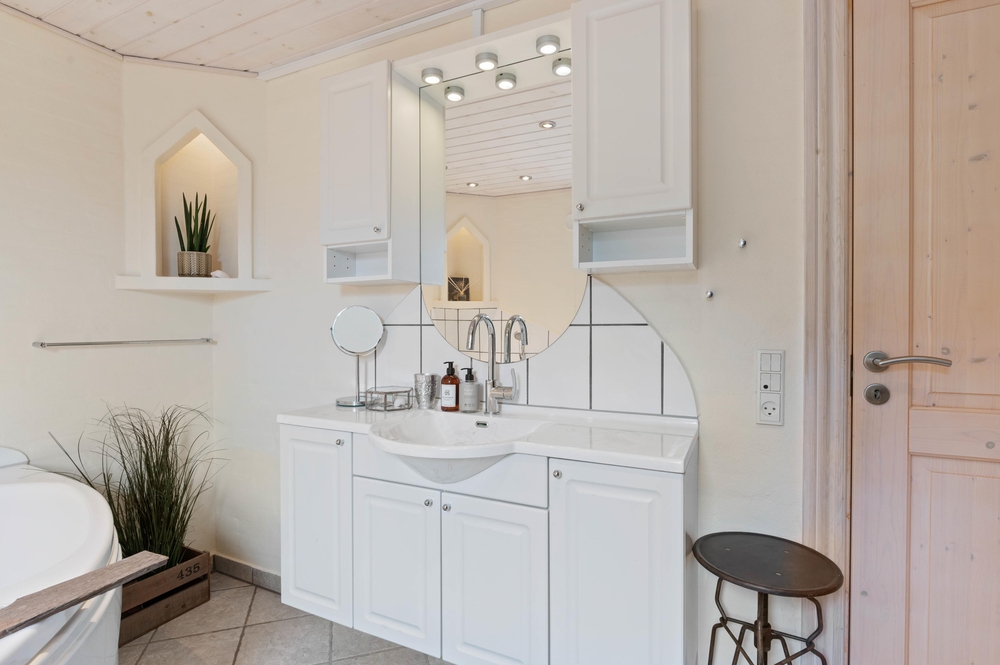 Das Badezimmer im ersten Stock des Hauses ist für die entspannten Momente zuständig. Hier ist ein klassischer Whirlpool und eine Sauna vorhanden, wo ihr euch während eures Urlaubs zusätzliche Entspannung gönnen und vom Alltag abschalten könnt.
