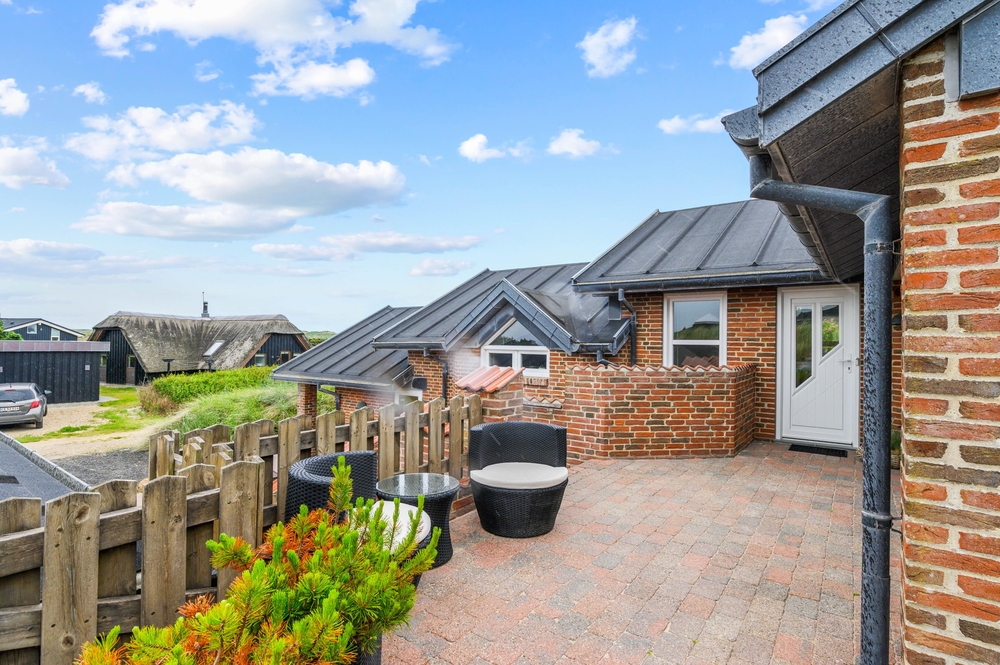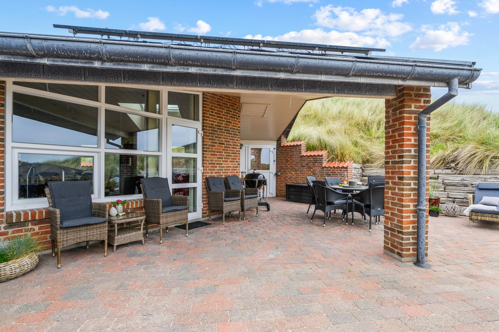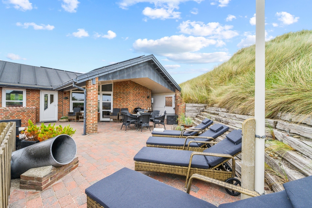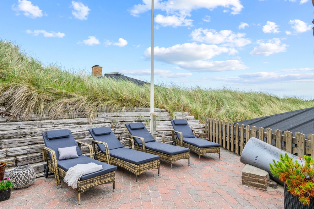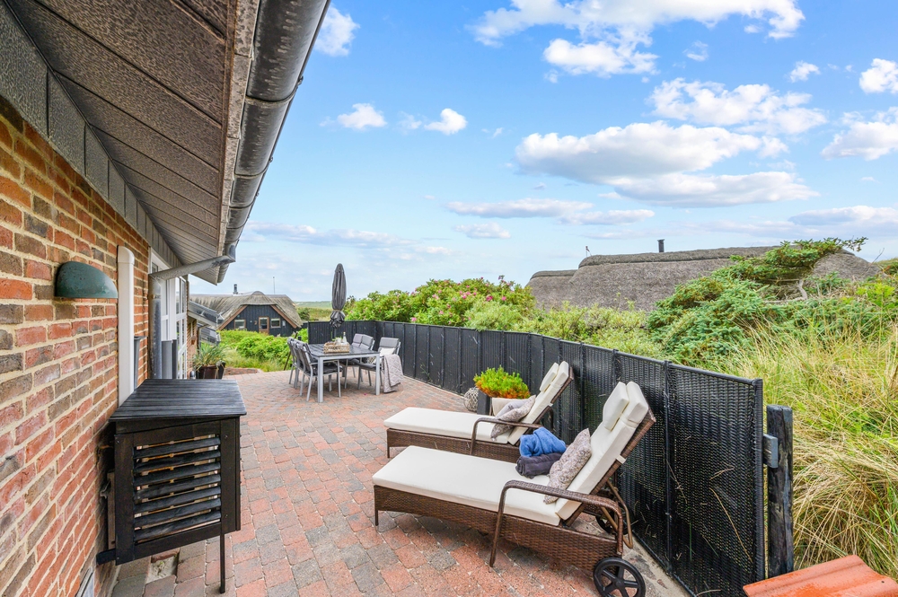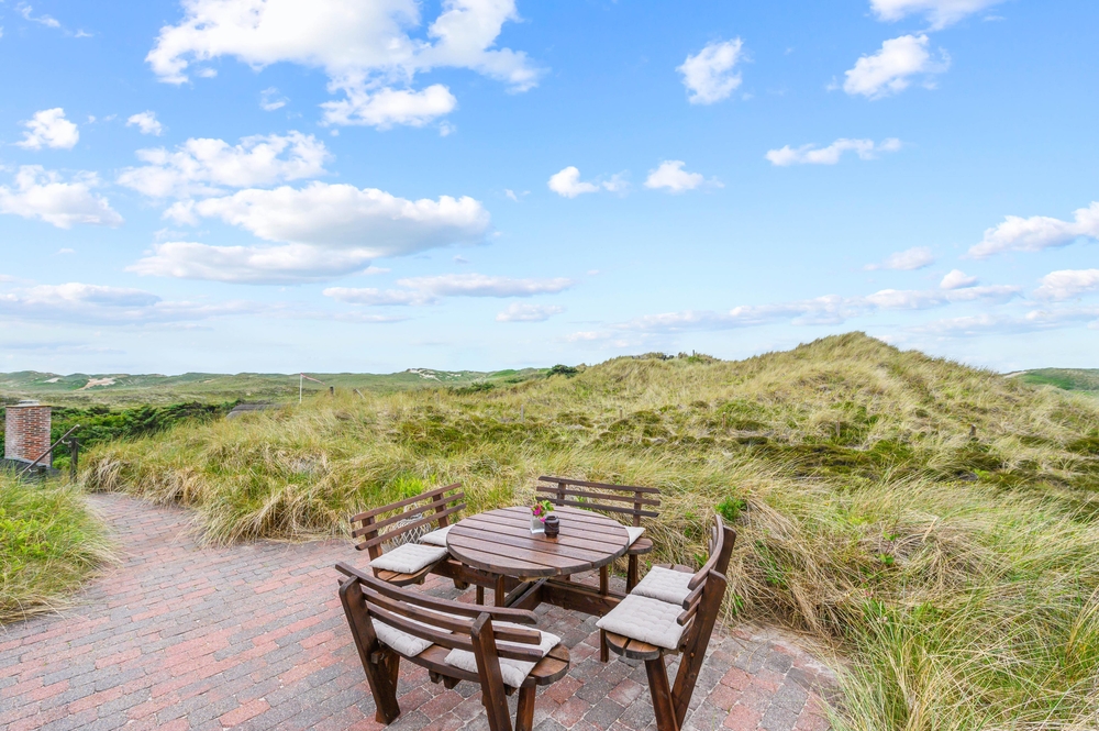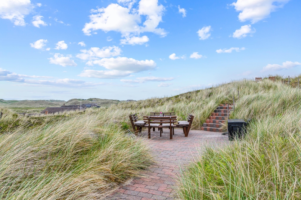 Draußen erwarten euch mehrere schöne Terrassen, auf denen ihr die sonnigen Tage genießen könnt. Entspannt auf den Gartenmöbeln und lauscht dem Rauschen der Brandung, während die Kinder im Sandkasten Sandburgen bauen und friedlich spielen. Eine der Terrassen des Ferienhauses befindet sich etwas erhöht auf einer Düne, von der aus ihr einen herrlichen Blick auf die Umgebung genießen könnt. Bis zu 2 Hunde sind erlaubt, welche sich ganz bestimmt auch wohlfühlen werden.