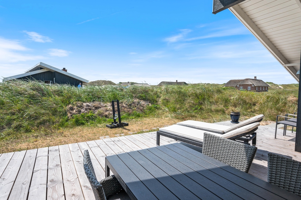 Wer gerne seine Urlaubstage an der frischen Luft verbringt, wird das Ferienhaus im Sneppedalen 80 lieben. Die große Terrasse des Ferienhauses ist mit den passenden Gartenmöbeln ausgestattet, sodass ihr es euch bei gutem Wetter auf der Terrasse gemütlich machen könnt. Die Terrasse ist offen, sowie teils abgeschirmt und überdacht, sodass ihr auch bei Wind ein windstilles Plätzchen findet.