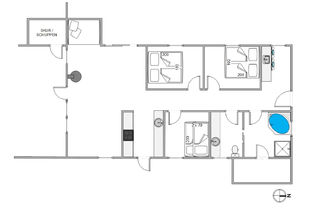 Seid ihr auf der Suche nach einem klassischen Ferienhaus, welches nicht weit vom Strand und der Nordsee liegt? Dann seid ihr hier genau richtig. Das Ferienhaus im Sneppedalen 80 liegt nur 270 Meter vom Strand entfernt und bietet euch Platz für bis zu 6 Personen. Hier könnt ihr also gerne mit der ganzen Familie Urlaub machen. Das Ferienhaus ist mit einem Holzofen ausgestattet, sodass ihr es euch gemütlich machen könnt, während ihr dem Knistern des Feuers lauscht. Für die Extraportion Entspannung sorgt der Whirlpool, den ihr im Badezimmer des Ferienhauses findet.