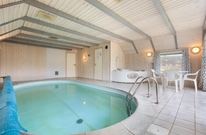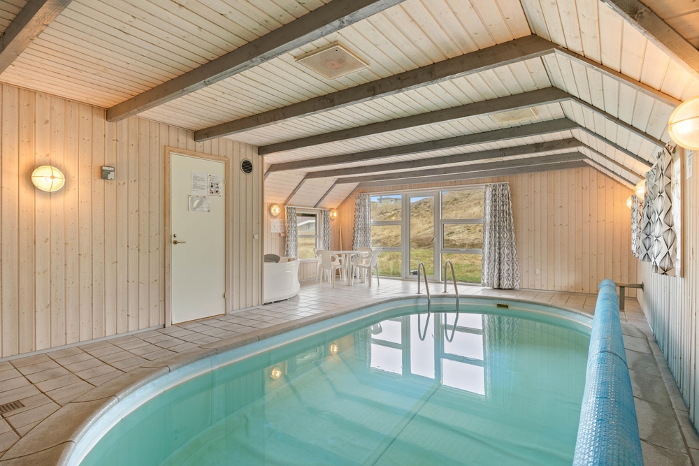 Wer keine Lust auf Spiele hat, kann eine Runde im 15 m2 großen Pool drehen, um danach sich im 2-Personen-Whirlpool zu entspannen. Um den Abend ruhig ausklingen zu lassen, wird der Holzofen angemacht und alle können es sich auf den Sitzgruppen im Wohnzimmer bequem machen. Hier ist der Bereich mit Teppich ausgelegt, der Küchen und Essbereich ist gefliest. Eine energiesparende Luft-zu-Luft Wärmepumpe sorgt für ein angenehmes Raumklima.