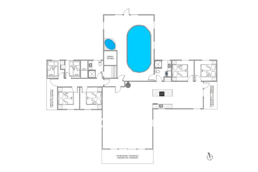Ihr findet in eurem Ferienhaus 6 Schlafzimmer, wo von 4 mit je einem Doppelbett und 2 mit je 1 Etagenbett ausgestattet sind. Alle Schlafzimmer sind mit Teppich ausgelegt. Damit es am Morgen keinen Stau gibt, findet ihr in eurem Ferienhaus 2 Badezimmer mit Fußbodenheizung. In einem der Badezimmer stehen die praktischen Alltagshelfer, eine Waschmaschine und einen Trockner.