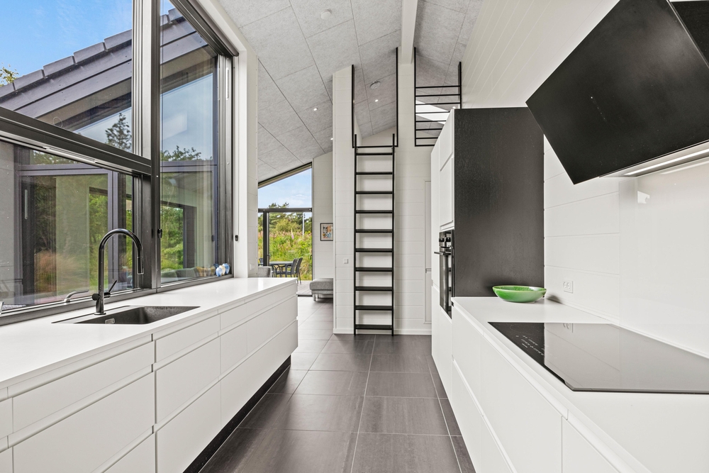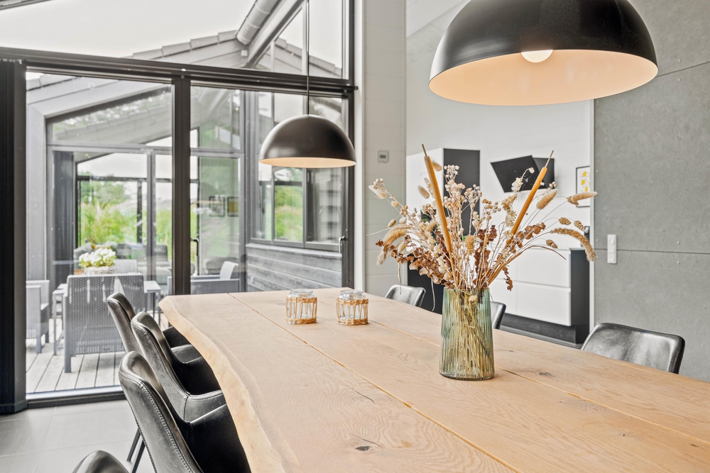 In diesem schönen Ferienhaus fällt einem direkt der großzügige Wohnbereich auf, der das Herz eures Feriendomizils bildet. Zahlreiche Bodentiefe Fenster lassen viel Licht herein und die hohen Decken und modernen Möbel erzeugen en stimmiges Gesamtbild.