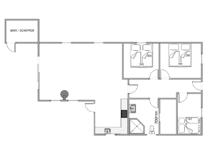 Das hell geflieste Badezimmer des Ferienhauses ist mit Dusche und einer Fußbodenheizung ausgestattet.Das Ferienhaus bietet Platz für 6 Personen in drei Schlafzimmern, von denen zwei mit einem Doppelbett ausgestattet sind. Das letzte Zimmer wird bei den Kindern für Begeisterung sorgen. Ein Stockbett lädt zu gemütlichem Schlafen ein.