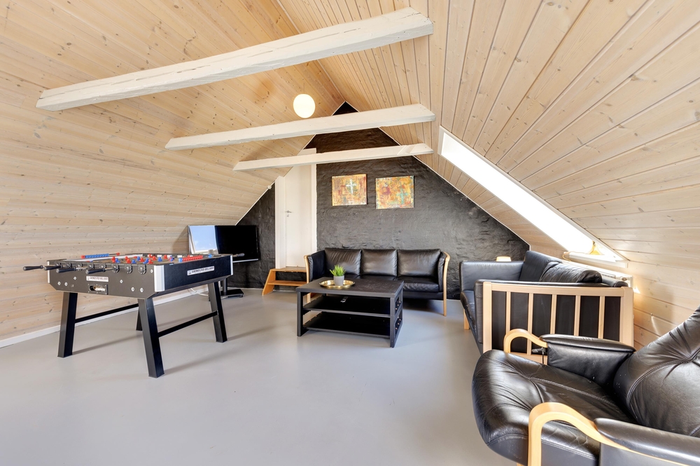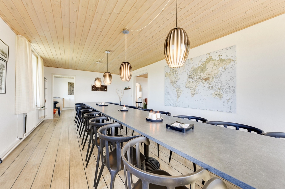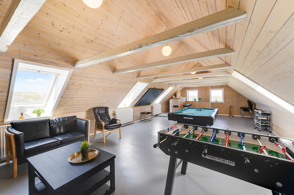 Im Ferienhaus an der Westküste Dänemarks könnt ihr mit 25 Personen und euren Hunden anreisen. Auf zwei Etagen verteilt finden alle Mitreisenden genügend Platz und das Haus bietet genügend Unterhaltung für jedes Alter auf allen Etagen ? hier wird sich garantiert niemand langweilen.