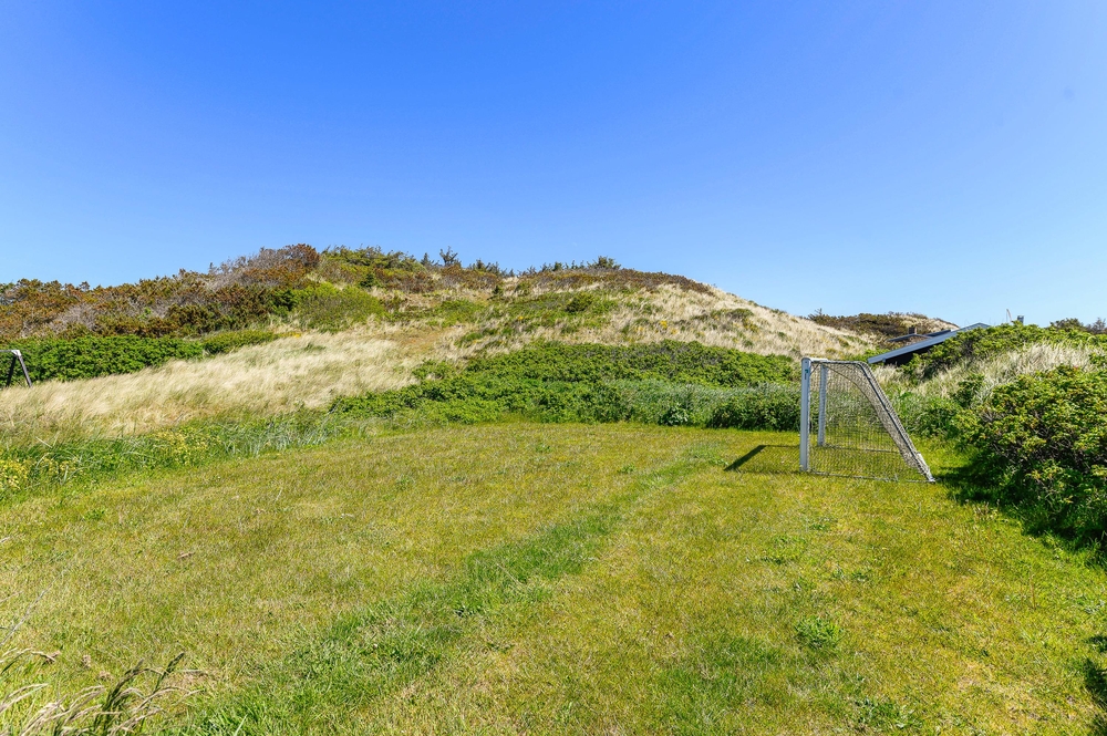 Auf der großen Terrasse stehen Liegestühle und Gartenmöbel bereit, damit ihr die sonnigen Tage draußen genießen könnt. Auf der geschlossenen Rasenfläche stehen Fußballtore, wo die Kids gegen die Erwachsenen antreten können und jede Menge Spiele spielen können.