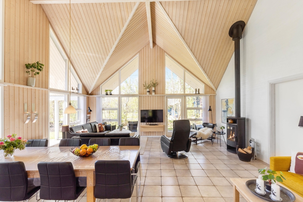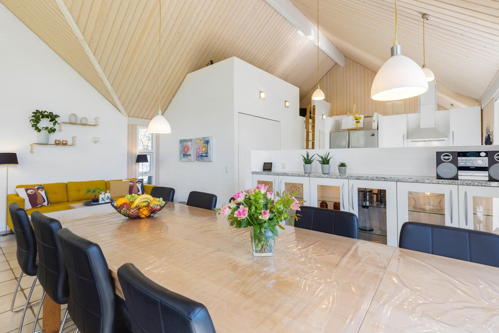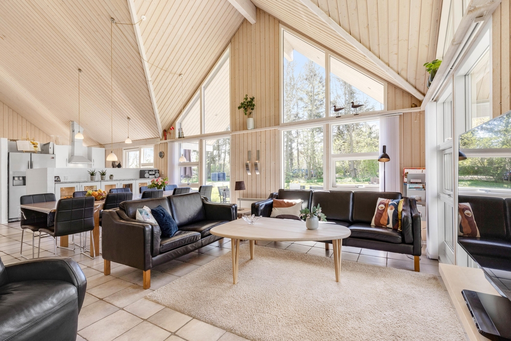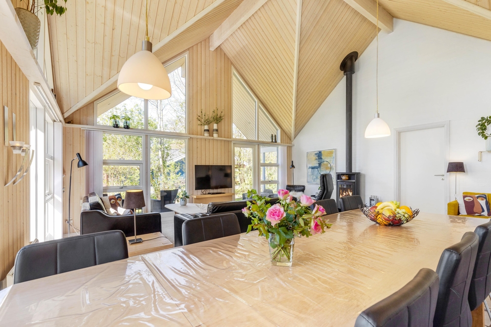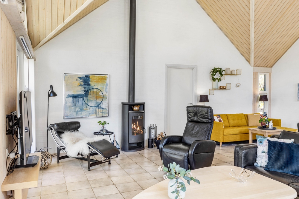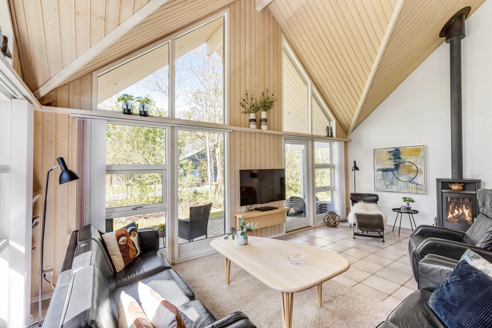 Mit großzügigen 160 m2 Wohnfläche bietet das Ferienhaus im Solbærvangen 12 genügend Platz für bis zu 10 Personen. Der Wohnraum lädt mit seiner hellen, freundlichen Atmosphäre zum Verweilen ein. Ein Kaminofen sorgt dabei besonders an kühleren Tagen für wohlige Wärme. Die offene Küche ist ideal für gemeinsames Kochen und geselliges Beisammensein. Eine Spülmaschine erleichtert euch dabei den Abwasch.