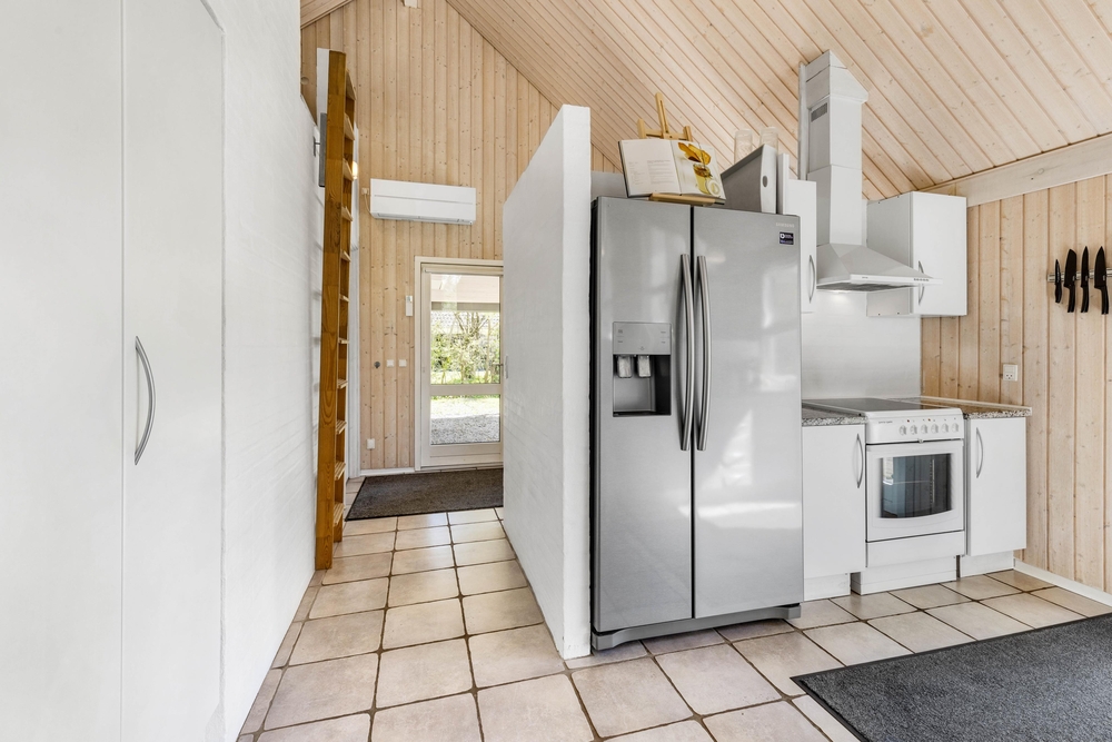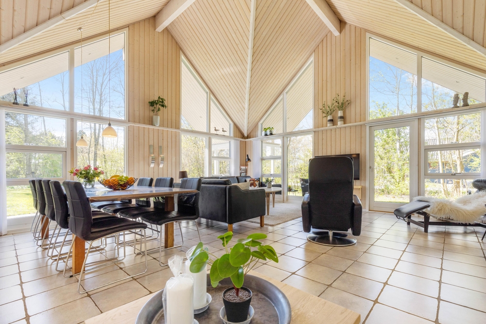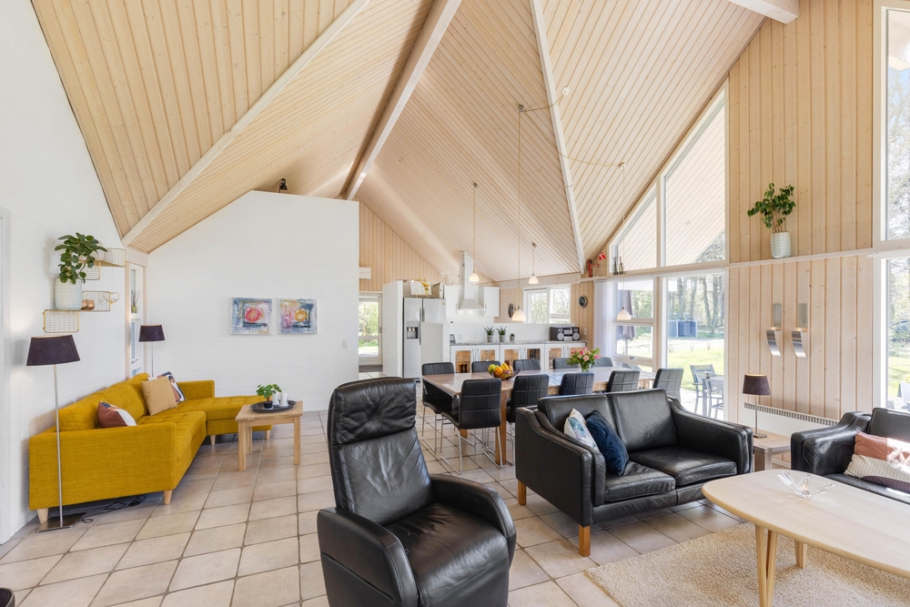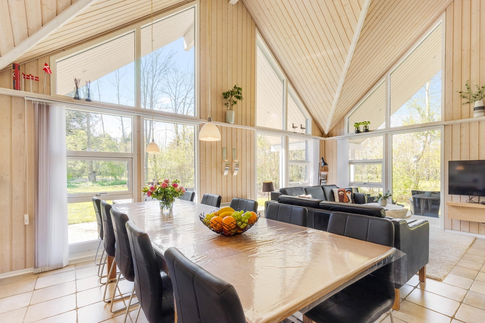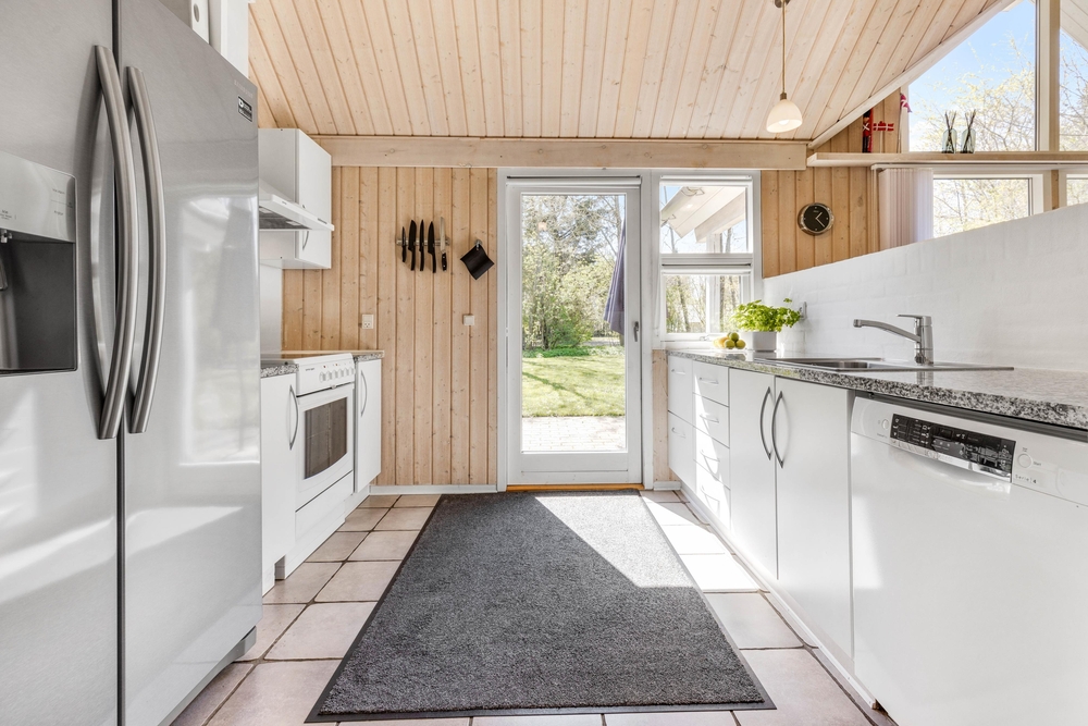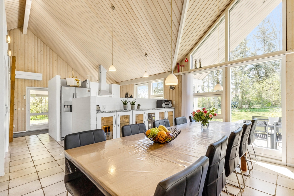 Mit großzügigen 160 m2 Wohnfläche bietet das Ferienhaus im Solbærvangen 12 genügend Platz für bis zu 10 Personen. Der Wohnraum lädt mit seiner hellen, freundlichen Atmosphäre zum Verweilen ein. Ein Kaminofen sorgt dabei besonders an kühleren Tagen für wohlige Wärme. Die offene Küche ist ideal für gemeinsames Kochen und geselliges Beisammensein. Eine Spülmaschine erleichtert euch dabei den Abwasch.