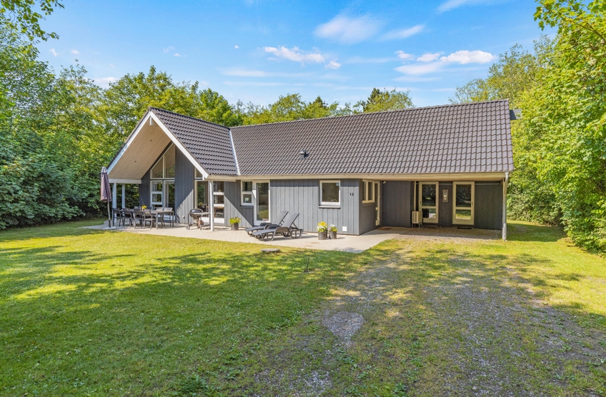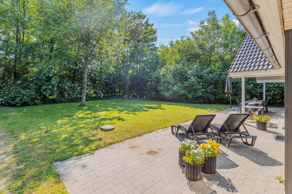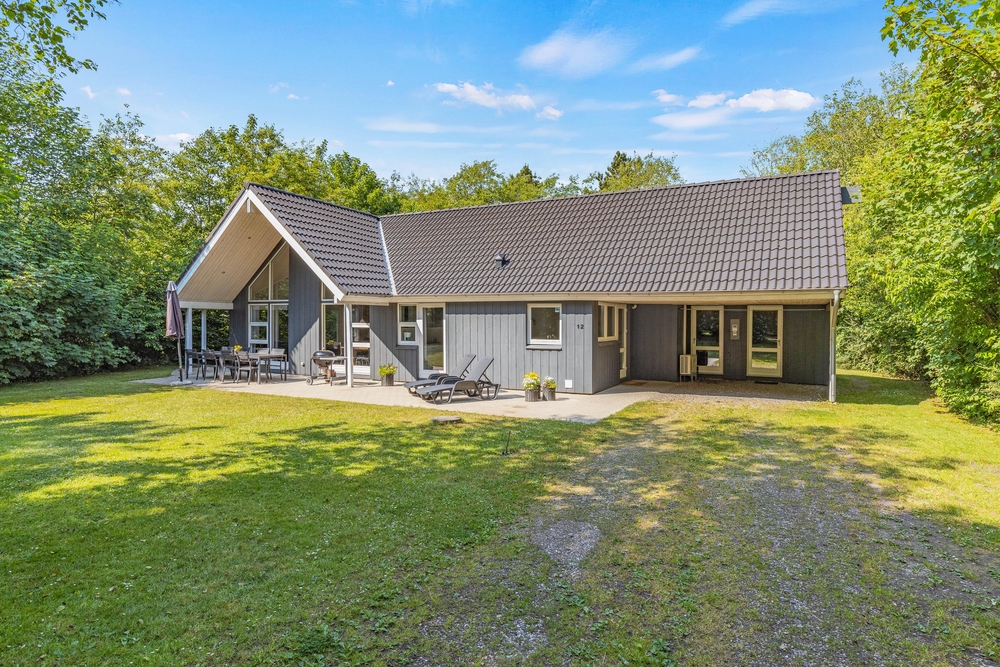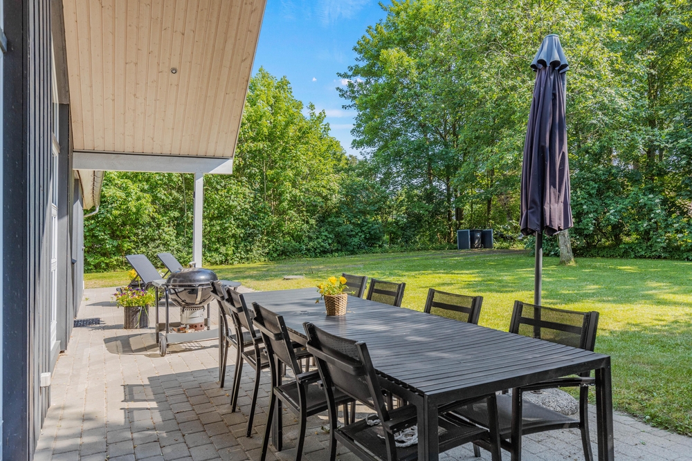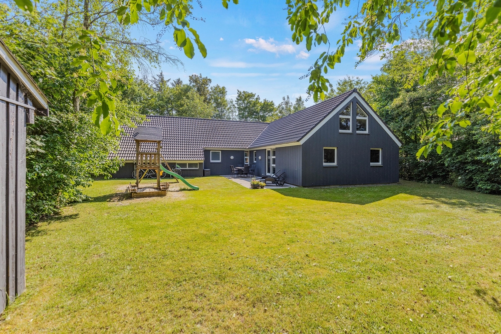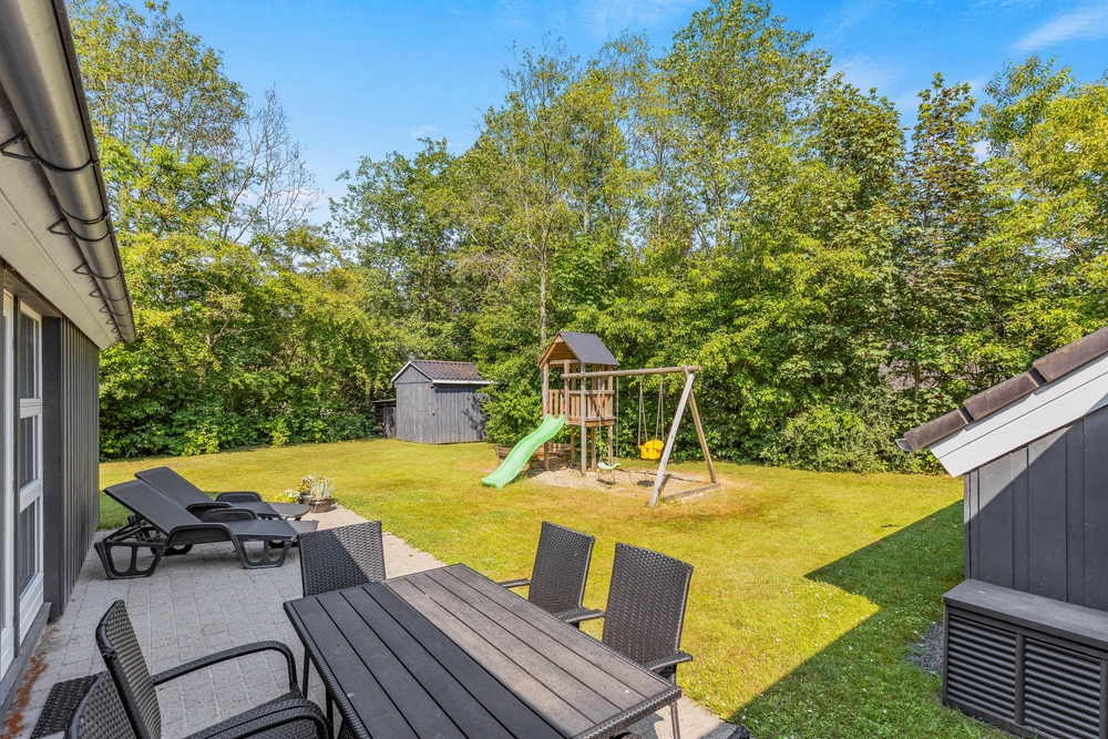 Umgeben von einem großen Rasengrundstück, bietet der Außenbereich des Ferienhauses im Solbærvangen 12 viel Platz für Aktivitäten im Freien und gemeinsame Stunden mit Familie und Freunden. Eure Kinder können schaukeln oder im Sandkasten spielen, während ihr euch auf der teils abgeschirmten Terrasse entspannen könnt.