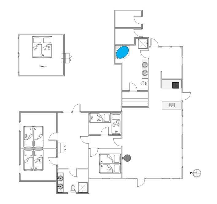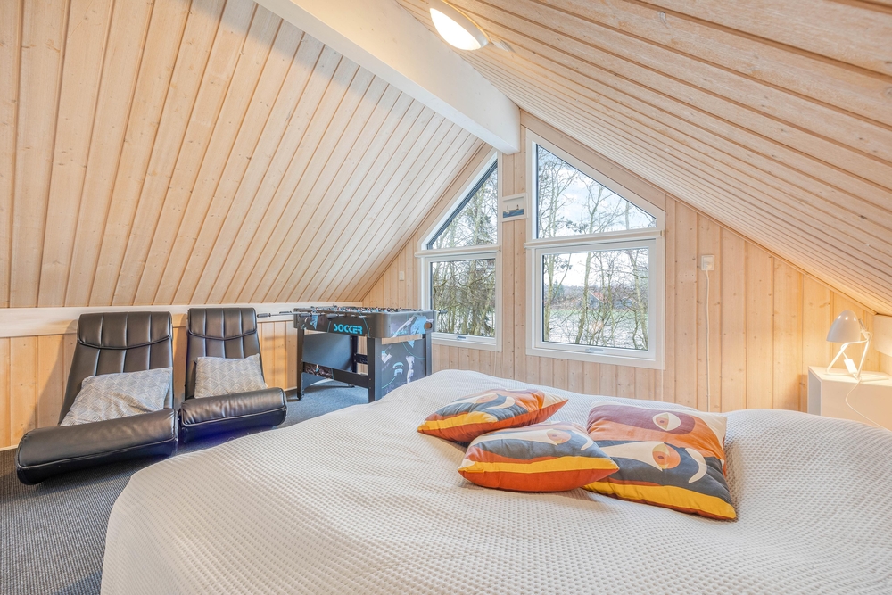 Mit insgesamt 4 Schlafzimmern bietet das Ferienhaus ausreichend Platz für alle. In 3 Schlafzimmern befinden sich Doppelbetten, während das 4. Schlafzimmer über 2 Einzelbetten verfügt. Für zusätzliche Schlafmöglichkeiten sorgen 2 Schlafplätze im Dachgeschoss.