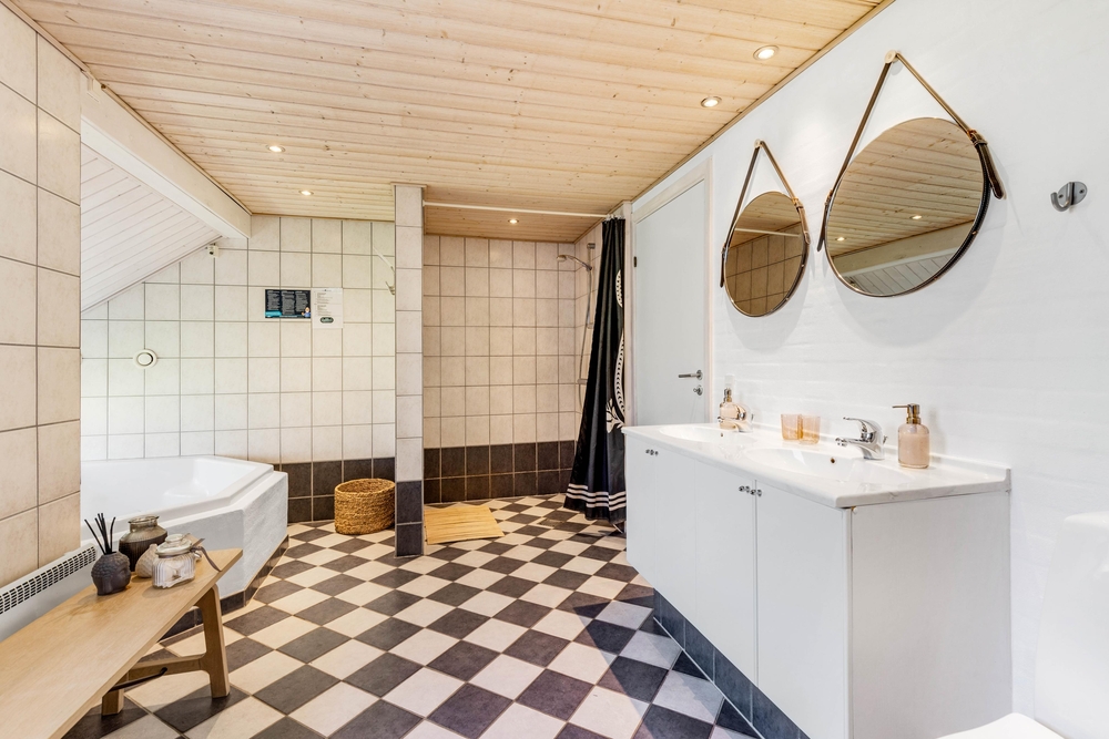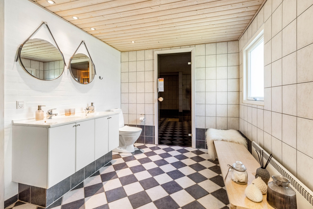 Euch stehen 2 Badezimmer mit Fußbodenheizung zur Verfügung. Dazu kommt ein Whirlpool mit Platz für bis zu 4 Personen und eine Sauna, welche euch nach einem erlebnisreichen Tag zum Entspannen einlädt.