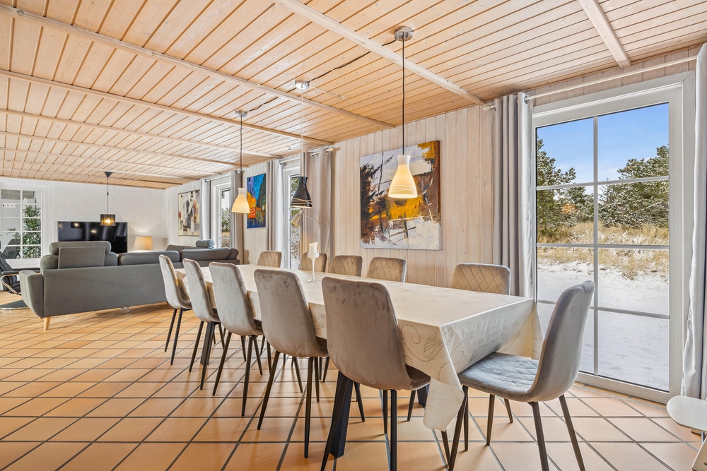 Wenn ihr auf der Suche nach einem großendem Ferienhaus mit Pool, Sauna und Whirlpool seid, dann ist dieses Ferienhaus sicherlich eine gute Wahl. Es bietet Platz für bis zu 12 Feriengäste, und auch euer Hund ist hier herzlich willkommen. Das Ferienhaus befindet sich in Solhaven 14 in Blåvand, einem beliebten Urlaubsgebiet an der Westküste.