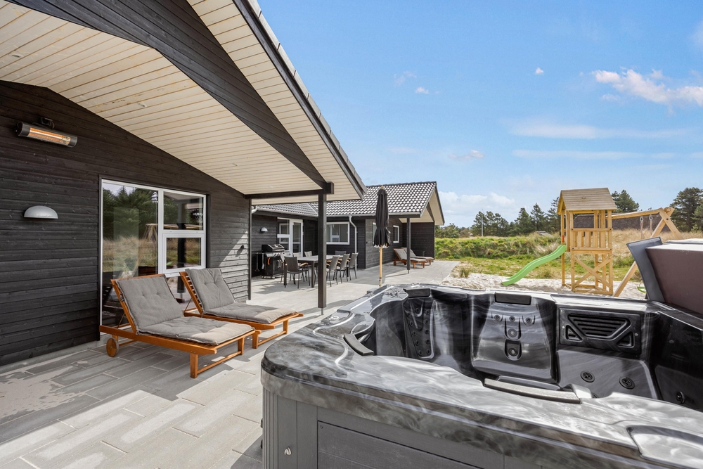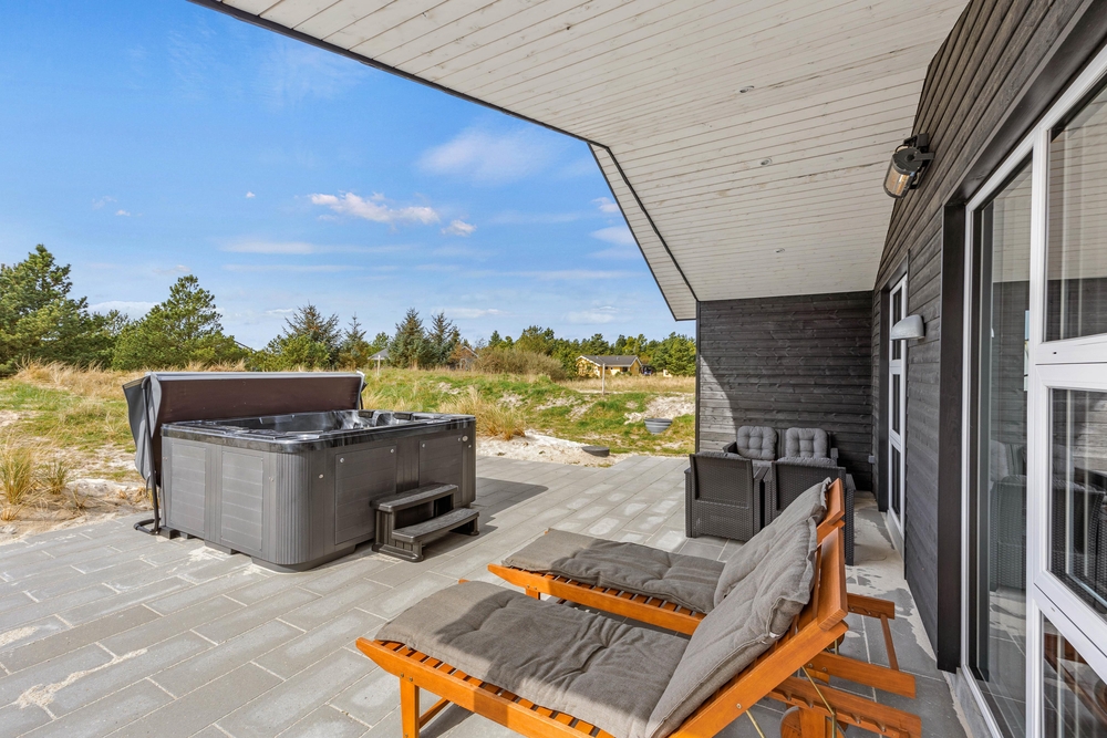 Ein weiteres Highlight auf der Terrasse ist der Outdoor Whirlpool. Unter dem einmaligen Sternenhimmel an der dänischen Westküste im warmen, sprudelnden Wasser zu Entspannen wird zum unvergesslichen Urlaubserlebnis.