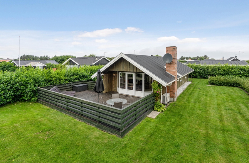 Schönes und geräumiges Ferienhaus im Solvej 40 in Søndervig. Das Ferienhaus steht auf einem großen Rasengrundstück und hat eine geschlossene Terrasse sowie eine eine energiesparende Wärmepumpe. Das Ferienhaus eignet sich gut für die kleine Familie oder einen romantischen Urlaub zu zweit. Hier bietet das Ferienhaus Platz für bis zu 4 Personen und einen Hund.
