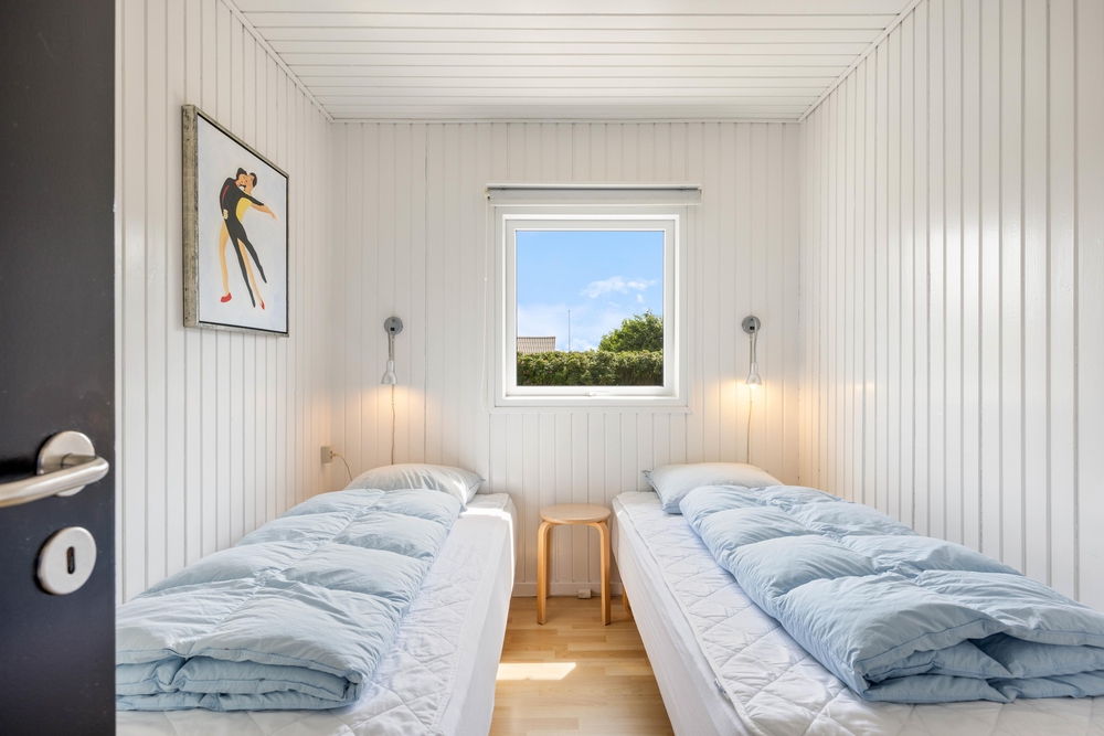 Von den zwei Schlafzimmern ist eines mit einem Doppelbett und ein weiteres mit zwei Einzelbetten ausgestattet. Somit ist Platz für insgesamt vier Personen, was das Ferienhaus ideal für die kleine Familie oder einen Urlaub mit Freunden macht. Die klassische Einrichtung sorgt für eine entspannte Atmosphäre, in der ihr nach einem Tag am Strand bestens entspannen, könnt.