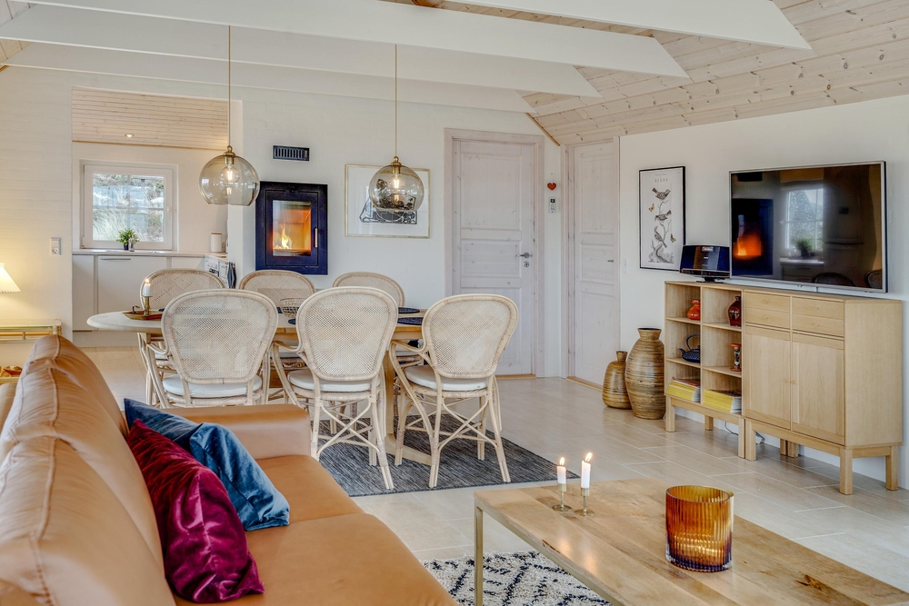 Das Ferienhaus ist charmant und gemütlich im hellen skandinavischen Stil eingerichtet. Es gibt auch eine energiesparende Wärmepumpe im Haus sowie eine Waschmaschine und einen Trockner.