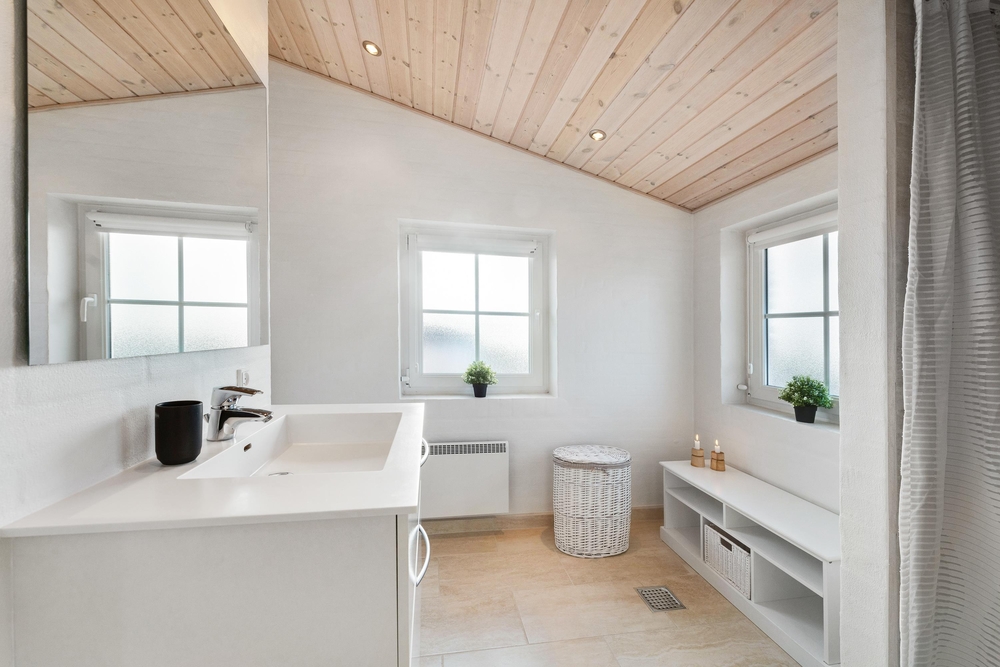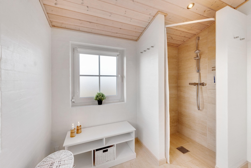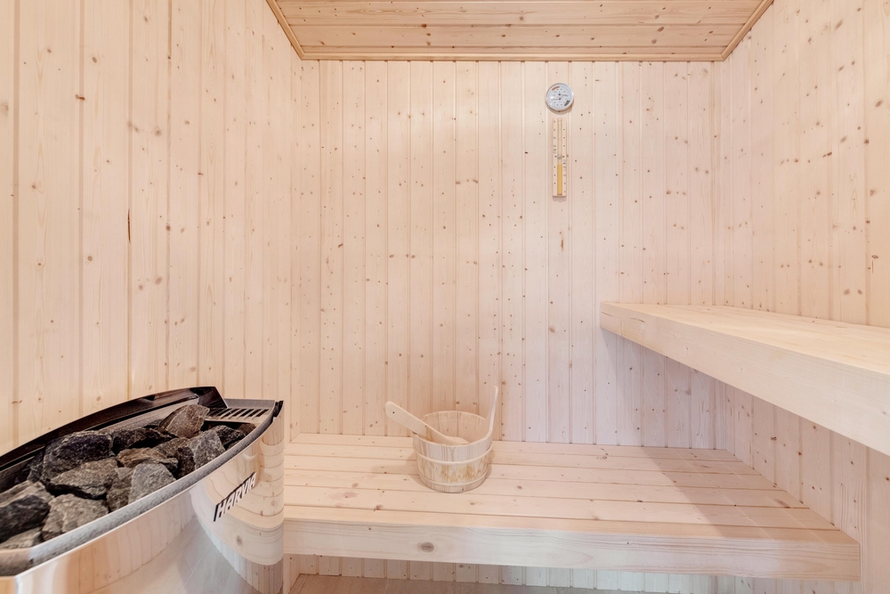 In Verbindung mit dem Badezimmer gibt es auch eine Sauna, wo ihr an kühleren Tagen wohlige Wärme bekommen könnt, vielleicht nach einem langen Spaziergang in den Dünen oder am Strand.