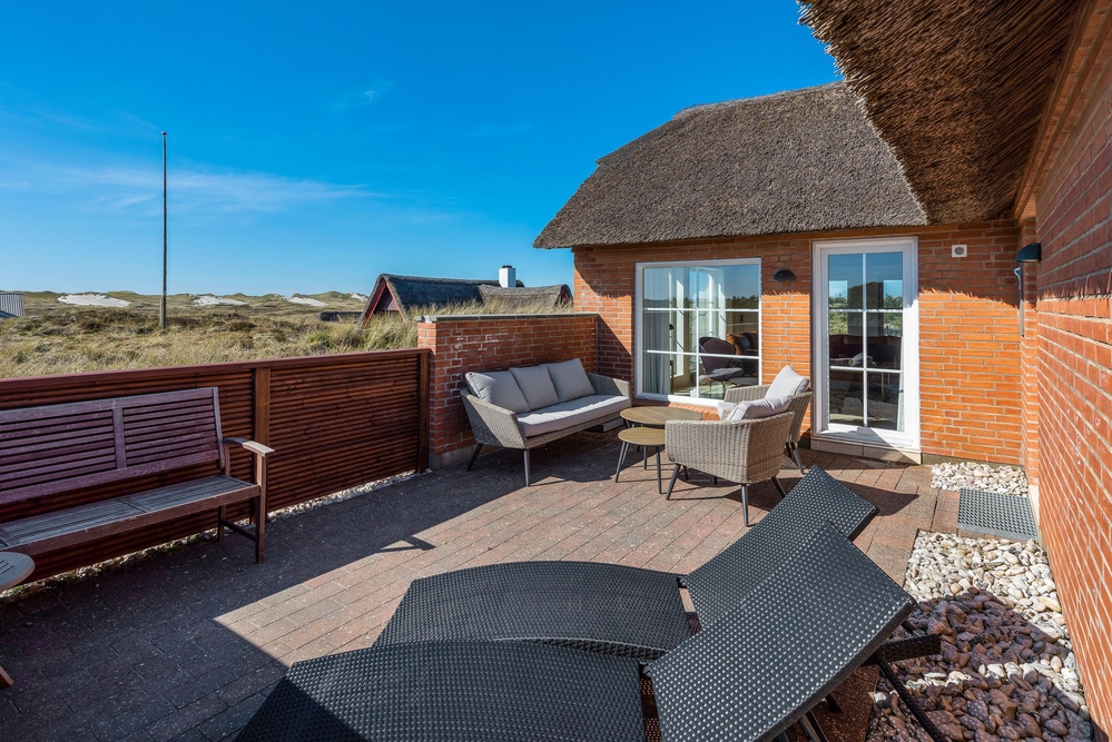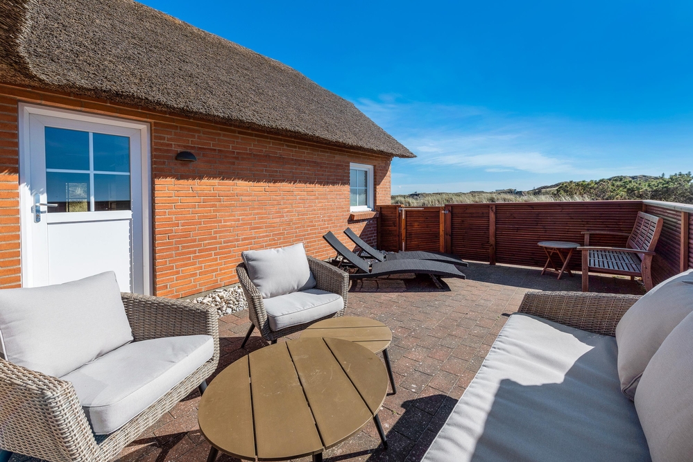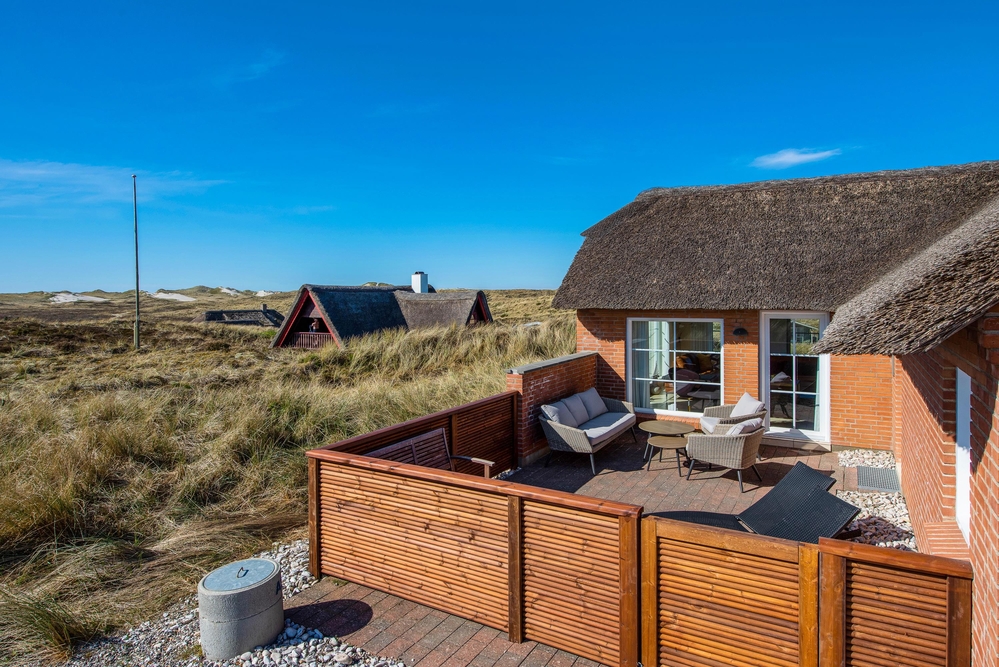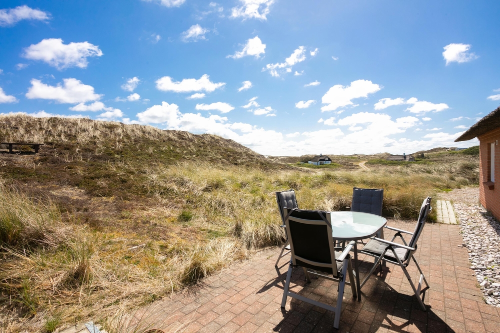 Von der Terrasse des Hauses nach Süden hat man einen fantastischen ?Blick? über die wilde und teilweise unberührte Natur mit den Dünen im Hintergrund. Nach Westen habt ihr freie Sicht auf die äußerste Dünenreihe und die Nordsee ist nur 400 Meter entfernt.