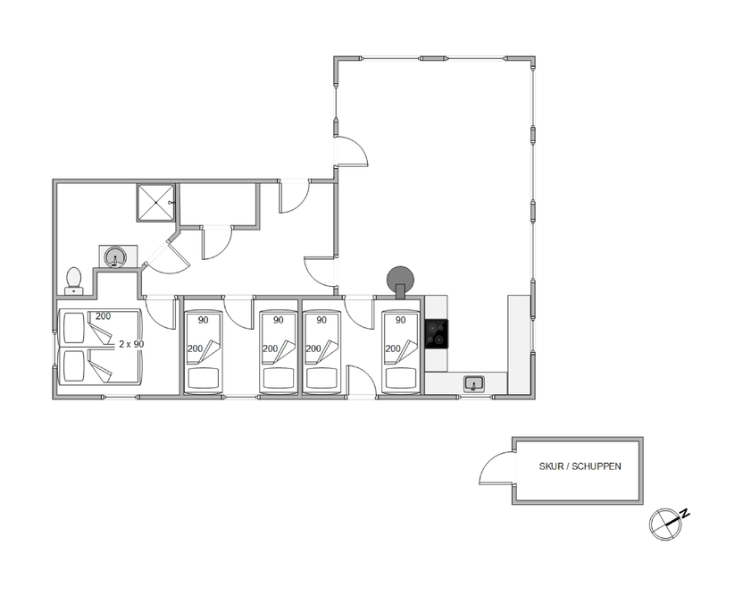 Hier im Sommervej 48 finden bis zu 6 Personen und euer Hund Platz. 3 Schlafzimmer, davon eines mit Doppelbett und 2 Zimmer mit je 2 Einzelbetten lassen euch gemütlich schlafen und träumen. Ein Zimmer hat auch Zugang zur Ostterrasse, von wo aus ihr im Sommer den Morgenkaffee zur Morgensonne genießen könnt.