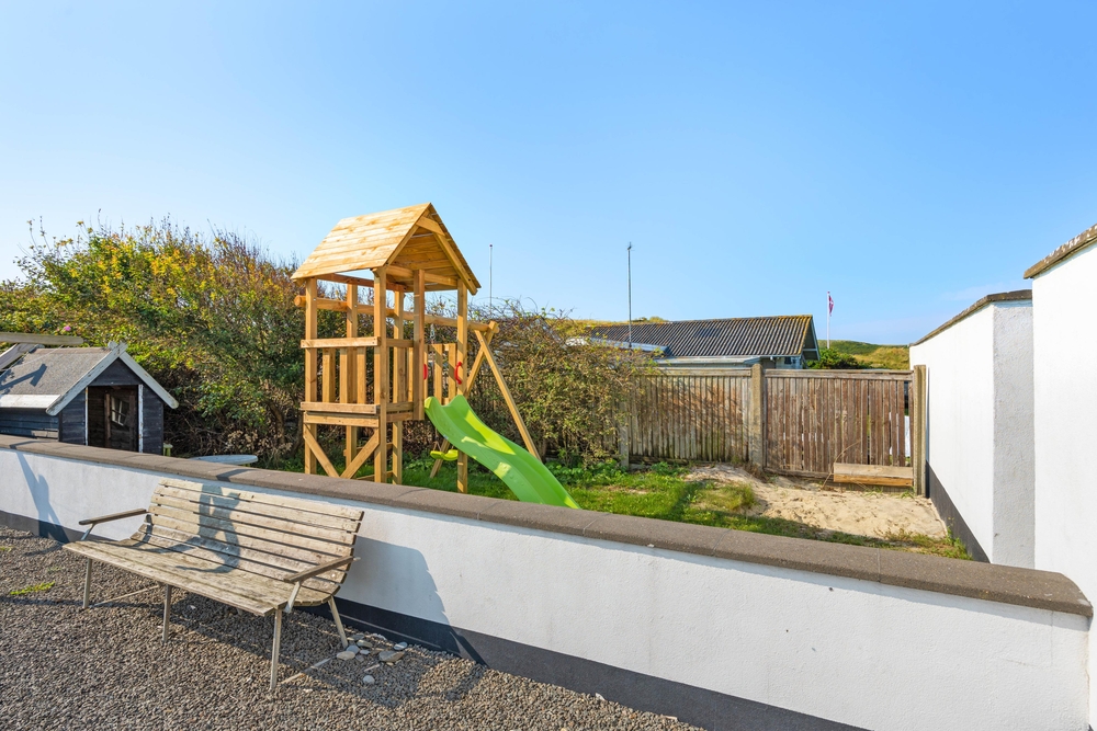 Auf dem Rasengrundstück neben der Terrasse gibt es einen kleinen Spielplatz für die Kleinsten der Familie.