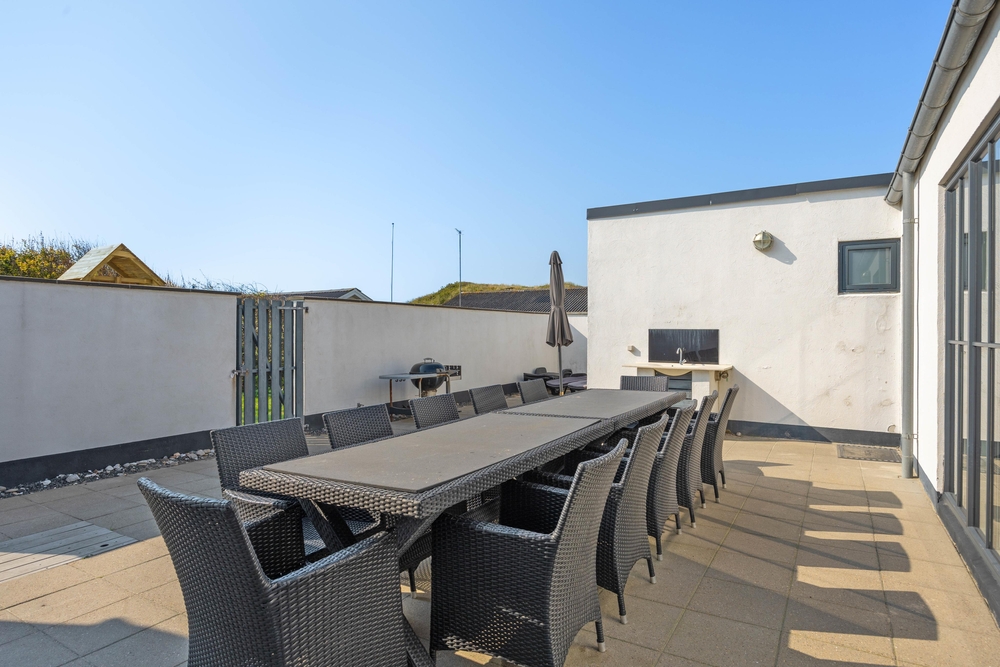 Großes Ferienhaus mit viel Platz für eine große Familie. Hier habt Ihr alles was man sich wünschen kann für einen gelungenen Urlaub. Draußen befindet sich ein geschlossener Sonnenhof für den perfekten Grillabend, sowie ein tolles Rasengrundstück, auf dem die Kinder spielen können.