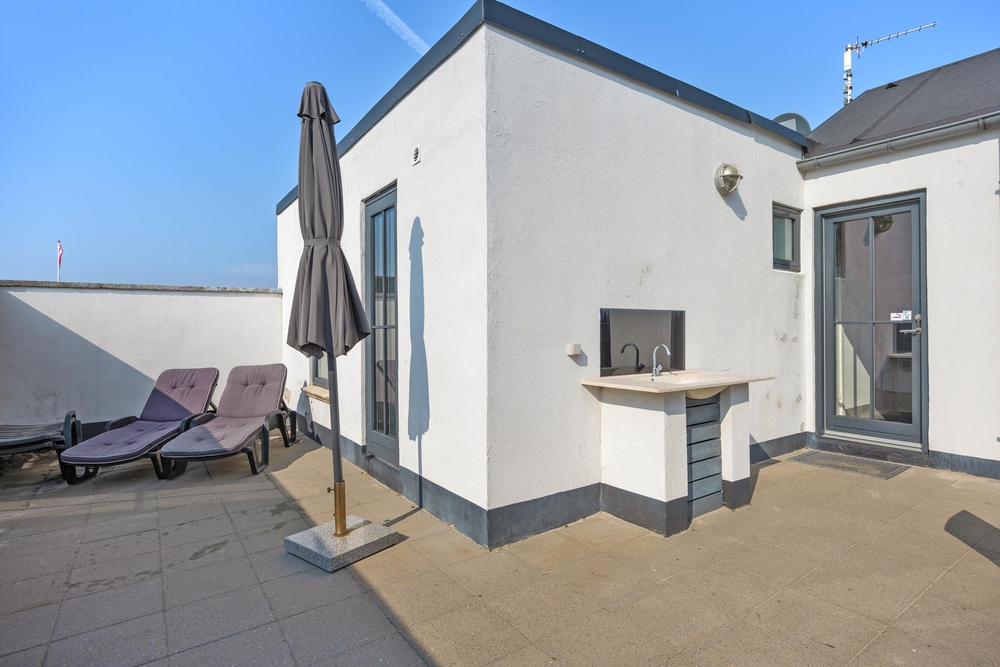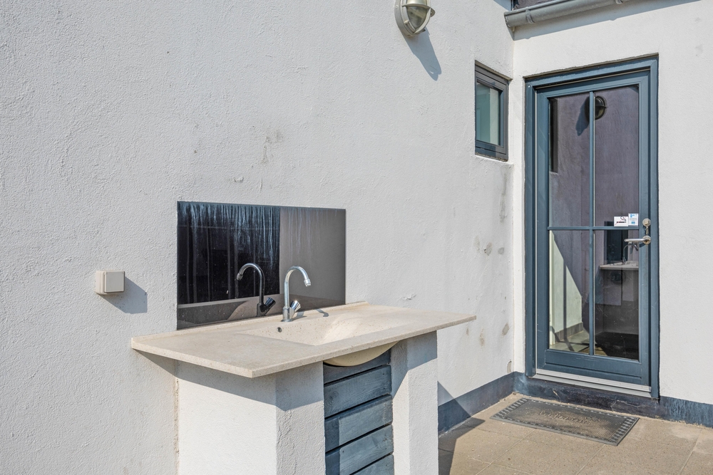 Auf der geschlossenen Südterrasse könnt Ihr dann Nachmittags ungestört die Sonne und die frische Luft genießen. Hier stehen Gartenmöbel und ein Grill zur freien Verfügung. Außerdem gibt es noch eine Außenküche, damit du den selbstgefangene Fisch vor dem Grillen säbern kannst.