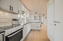 Die Küche ist praktisch eingerichtet und bietet ausreichend Platz um gemeinsam zu kochen. Neben dem Herd stehen Mikrowelle und eine 100 Liter Gefriermöglichkeit zur Verfügung, den Abwasch übernimmt der Geschirrspüler.