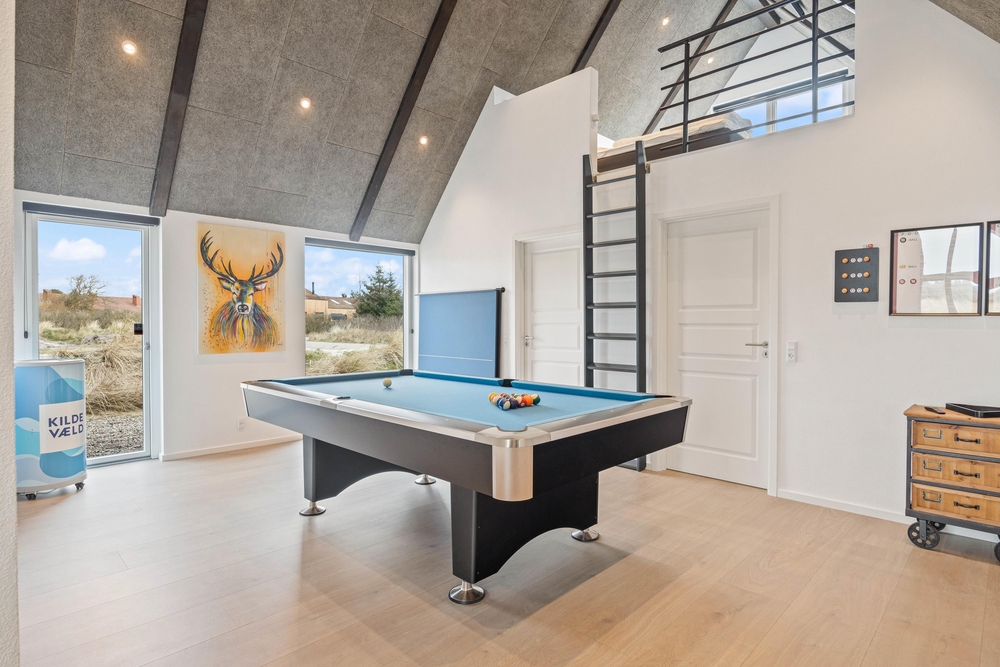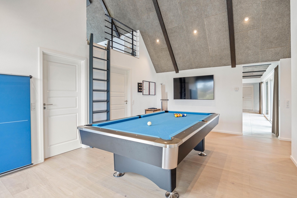 In diesem Feriendomizil erwartet euch ein Gesamtpaket an Ausstattung, das euch den Urlaub versüßen wird. Eines der Highlights ist der große Wohnbereich mit seinen hohen Decken und den hochwertigen Möbeln in klassischem Design. Angrenzend findet ihr den Aktivitätsraum, der euch mit Poolbillard und Tischtennis auch bei Regentagen unterhält.