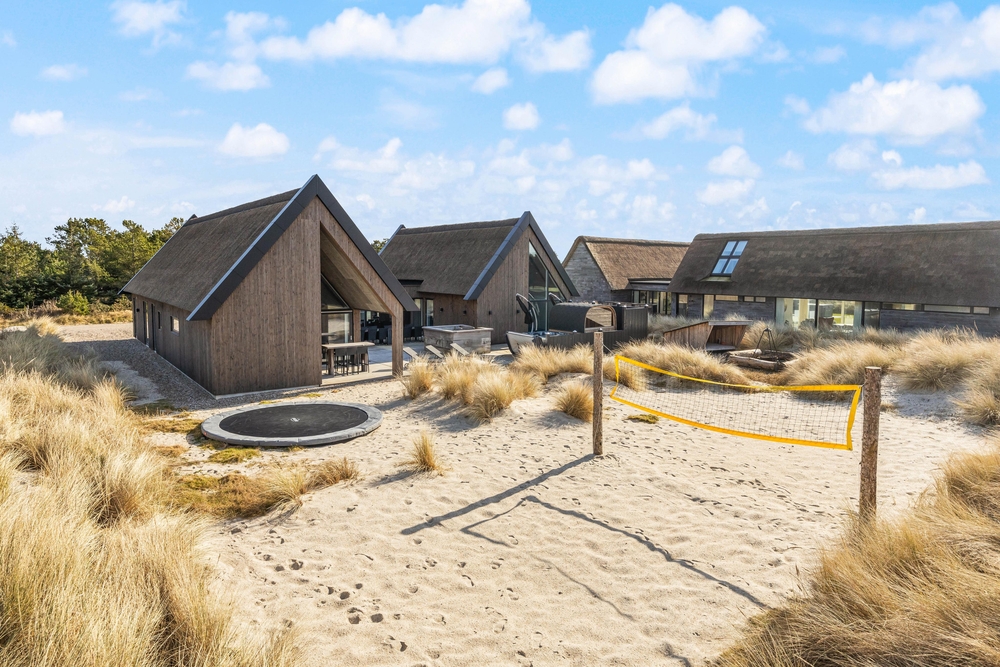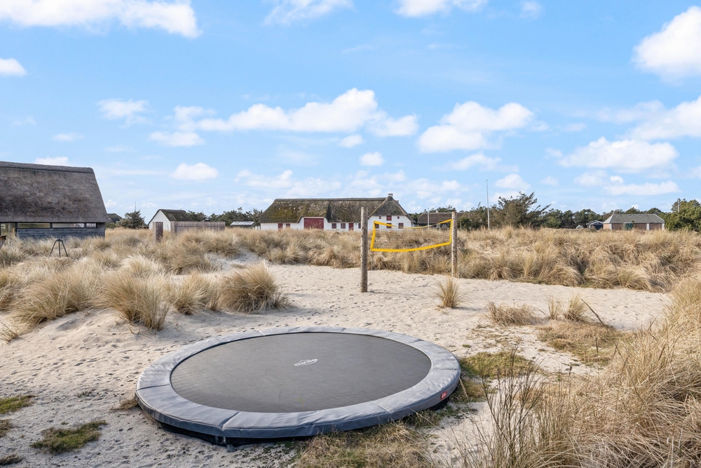 Zudem gibt es einen weiteren großen Esstisch, auf dem ihr ein leckeres BBQ genießen könnt, welches ihr auf dem modernen Gasgrill zubereitet habt. Vorher könnt ihr an der Feuerstelle leckeres Stockbrot backen. Um euch auszutoben, steht ein Trampolin bereit und auch auf dem Volleyballfeld könnt ihr euer Können zeigen.