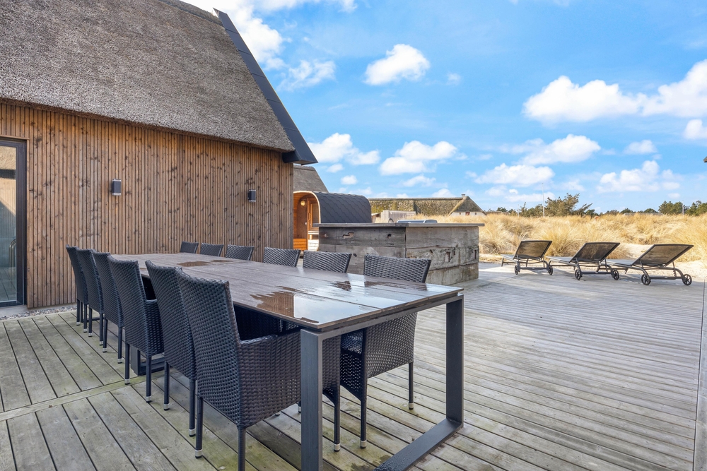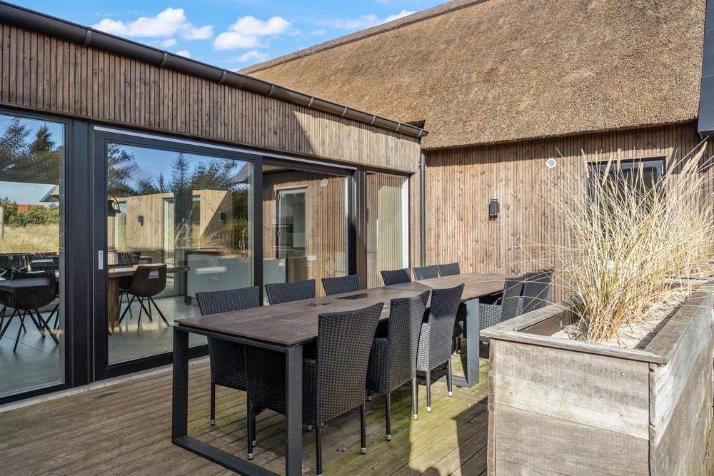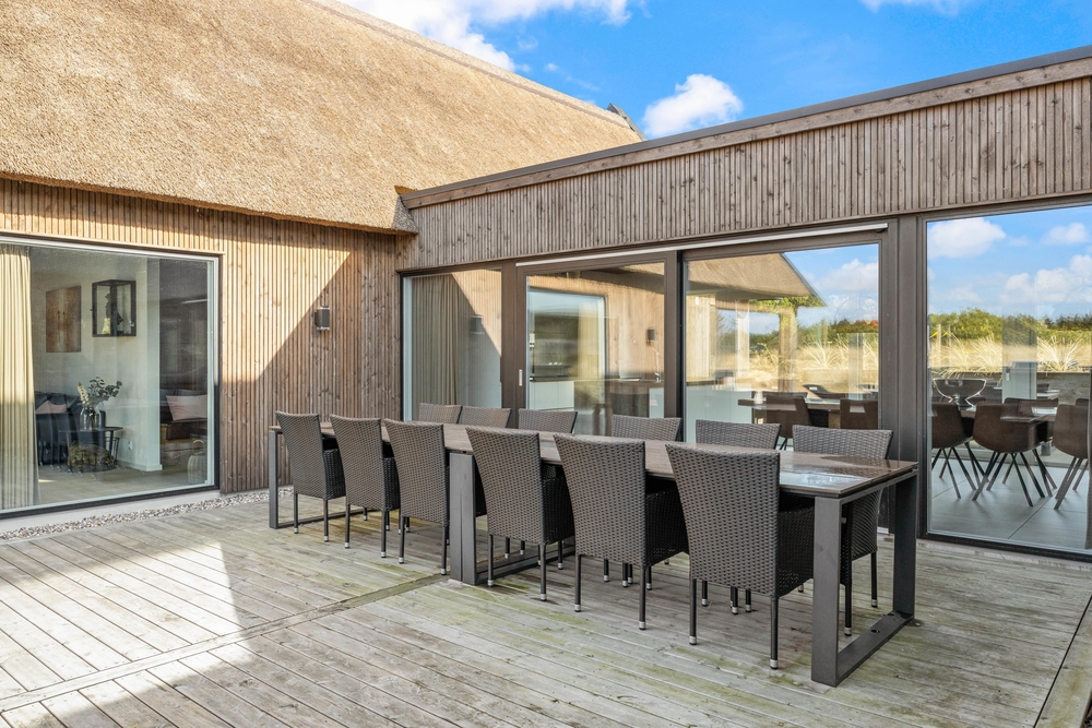 Dieses hochwertig ausgestattete Ferienhaus aus dem Baujahr 2021, bietet euch viele tolle Annehmlichkeiten unter einem Dach. Auch die Lage ist ein Traum, denn von hier aus sind es nur 300 m bis zum Sandstrand der dänischen Westküste. Bis zu 12 Personen haben hier jede Menge Platz für Entspannung, Wellness und Aktivitäten. Zum Gesamtpaket gehört auch die inkludierte Endreinigung, so dass ihr euren Urlaub bis zum Schluss genießen könnt.