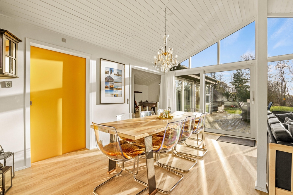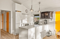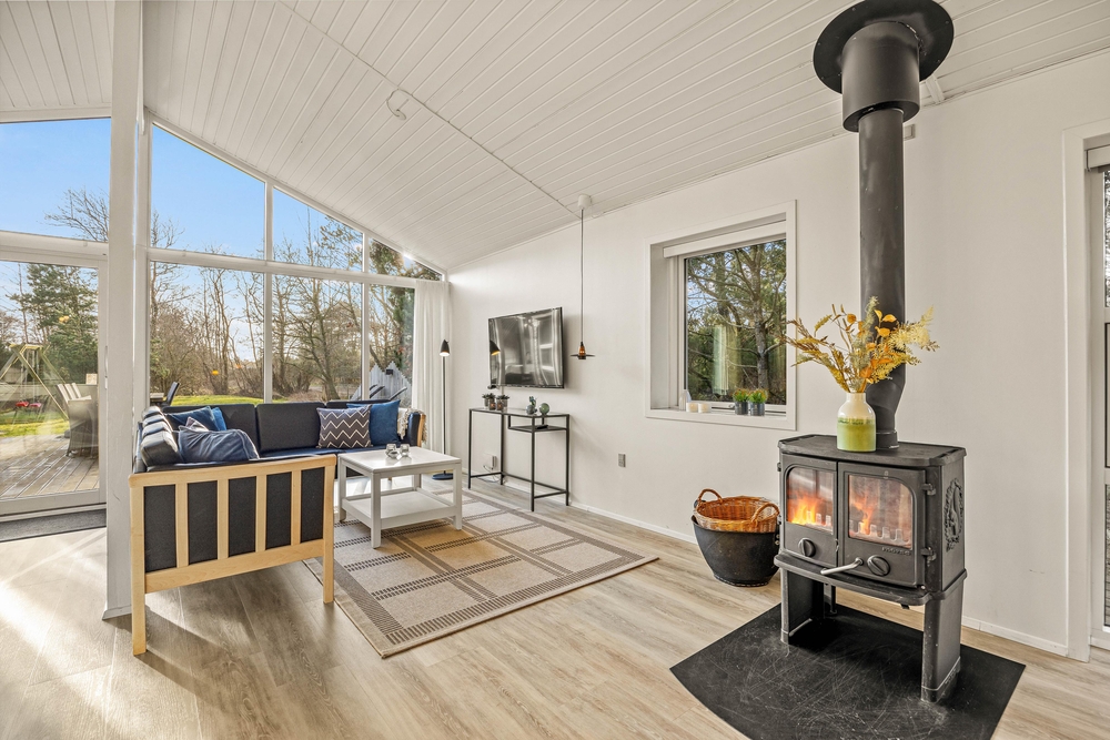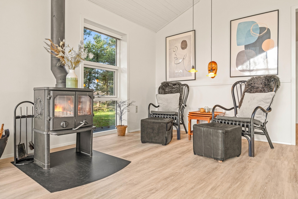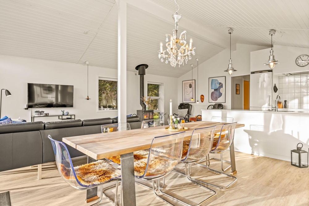 Die skandinavische Gemütlichkeit, und die offene Atmosphäre könnt Ihr in diesem Ferienhaus im Wohnbereich mit Kaminofen, und offener Wohnküche genießen. Ihr werdet hier viele gemeinsame, harmonische Stunden beim Kochen, Spielen und Entspannen verbringen, und dabei den traumhaften Ausblick durch die große Fensterfront genießen.
