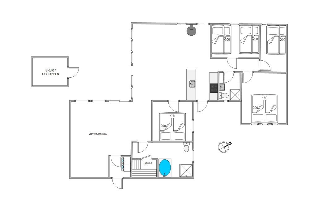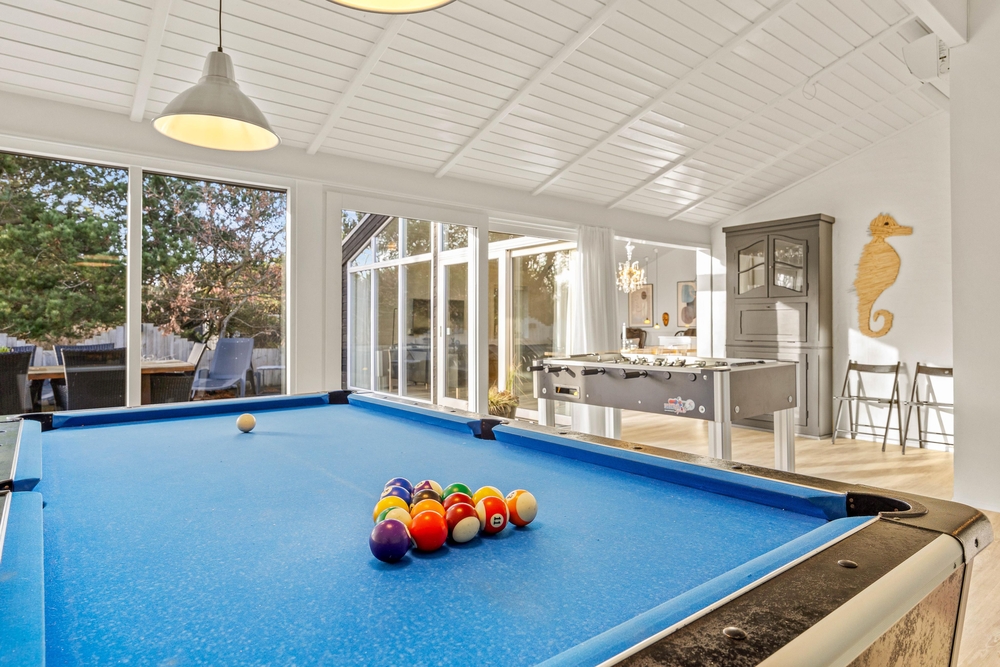 In diesem wunderschön eingerichteten Ferienhaus im Sønder-Vasevej 80 steht einem entspannten Urlaub für Euch als Familie mit Kindern und Hund nichts im Wege. Neben Entspannung und Wellness in der Sauna oder im Whirlpool, könnt Ihr in diesem Haus auch ganz besonders viel Spaß haben im Aktivitätsraum haben.