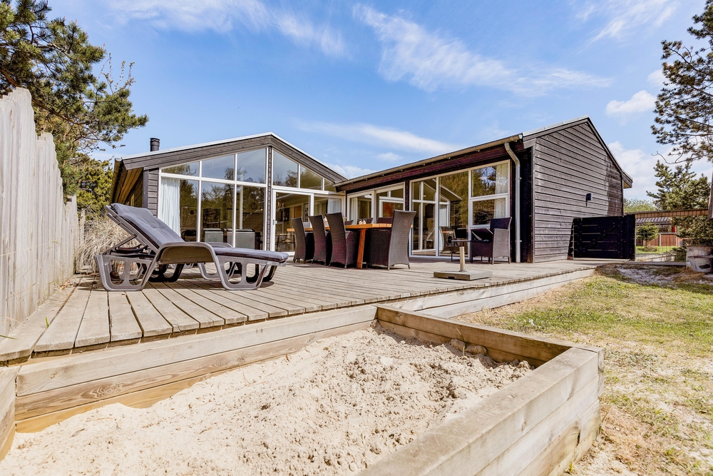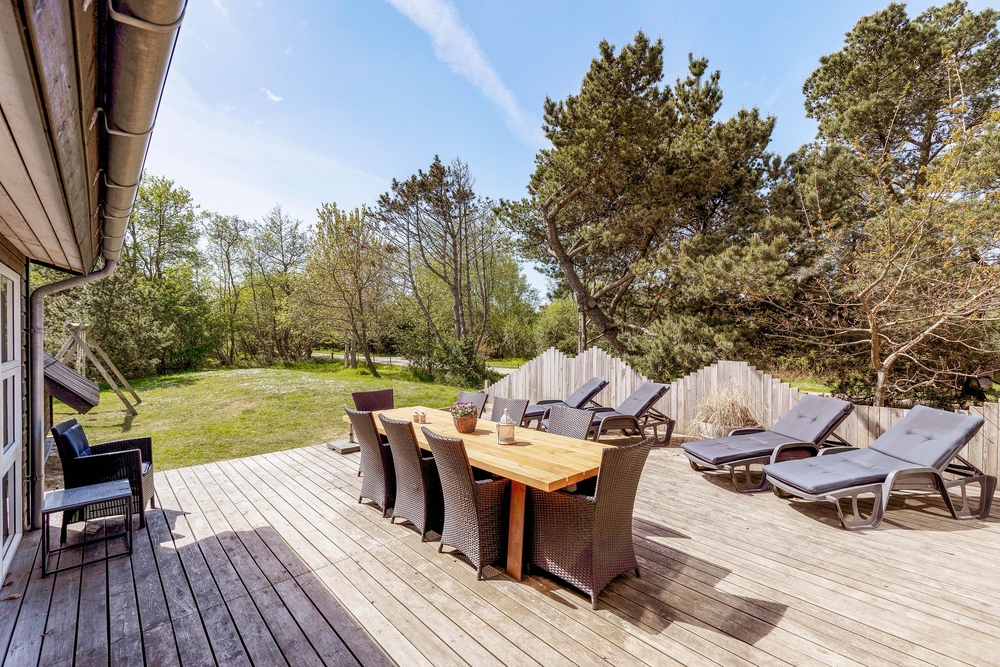 Auf dem eingezäunten Grundstück können sich Eure Kinder und die Hunde austoben und frei bewegen. Schaukel, Sandkiste und Tischtennis sorgen auch hier wieder für ganz viel Spaß. Im vorderen Bereich des Grundstücks gibt es sogar ein kleines Fußballfeld mit Toren. Die Kinder sind also versorgt. Diese freien Minuten solltet Ihr nutzen, um entspannt im Liegestuhl ein paar Sonnenstrahlen einzufangen. Das Ferienhaus hat gleich mehrere schöne Terrassenplätzchen. Den Kaffee am Morgen könnt ihr in aller Ruhe, wenn alle noch Schlafen, gemütlich auf dem überdachten Terrassenbereich genießen. Auf der großen, windgeschützten Terrasse könnt Ihr den Abend beim Grillen und einem leckeren Glas Rosé ausklingen lassen.