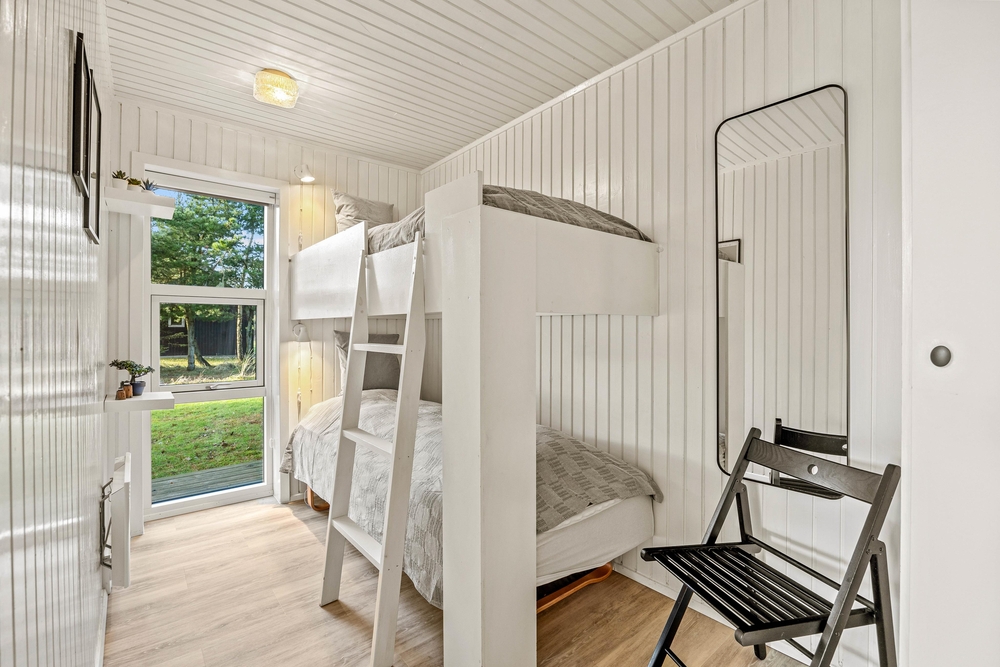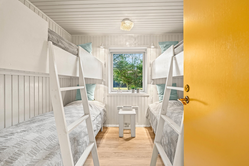 Die Aufteilung der Schlafzimmer ist ideal für einen Urlaub mit der Großfamilie oder mit Freunden. In zwei Schlafzimmern sind jeweils zwei Doppelbetten, und drei Schlafzimmer sind mit gemütlichen Etagenbetten ausgestattet. Die Kinder werden sie lieben. Außerdem hat auch jeder sein eigenes Badezimmer, was euch Schlange stehen am Morgen erspart. Beide Bäder haben Fußbodenheizung, und sorgen mit Sauna und Whirlpool für das richtige Wellness Feeling.